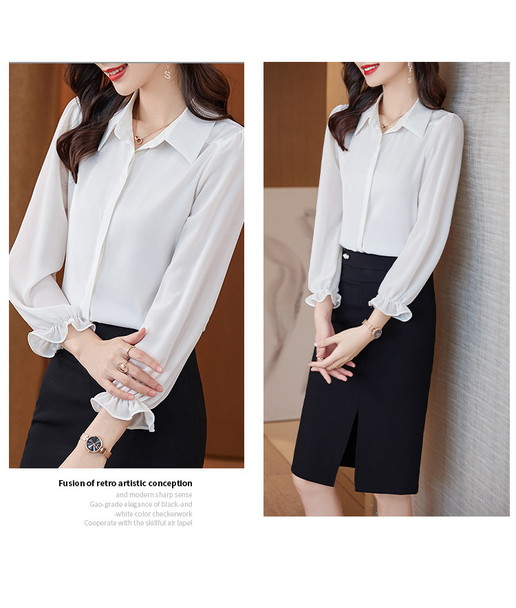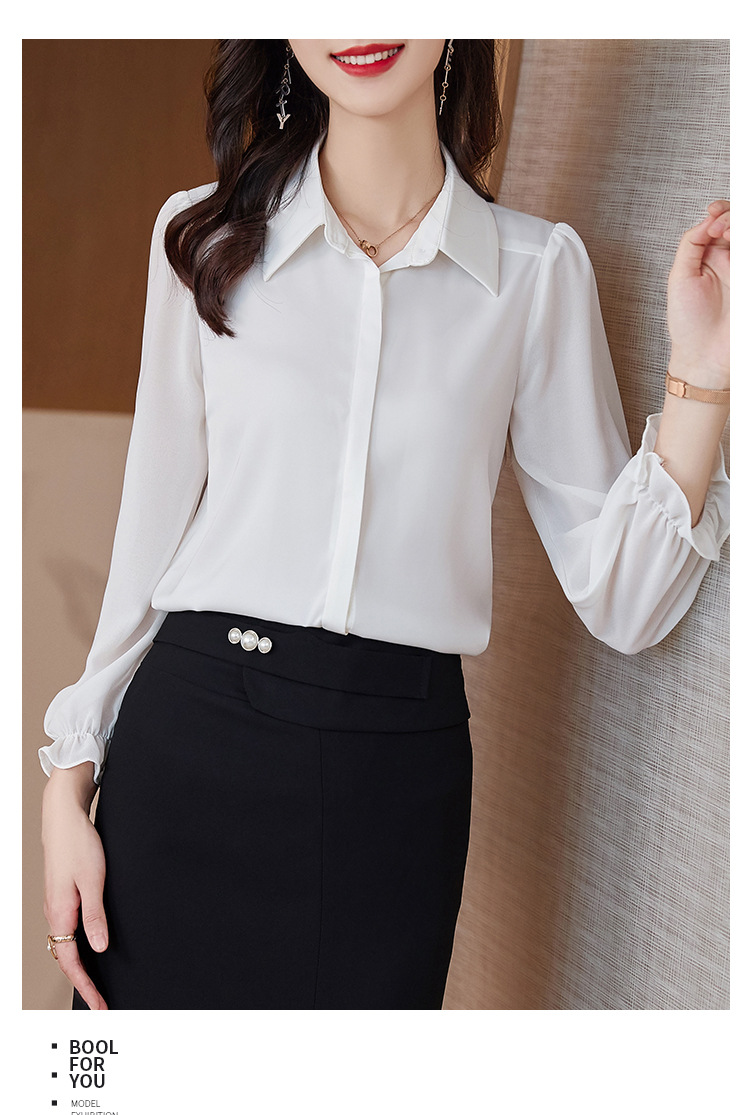 XZ-AL-652294379267白色衬衣春秋职业时尚洋气正装工作服雪纺垂感气质显瘦长袖衬衫女