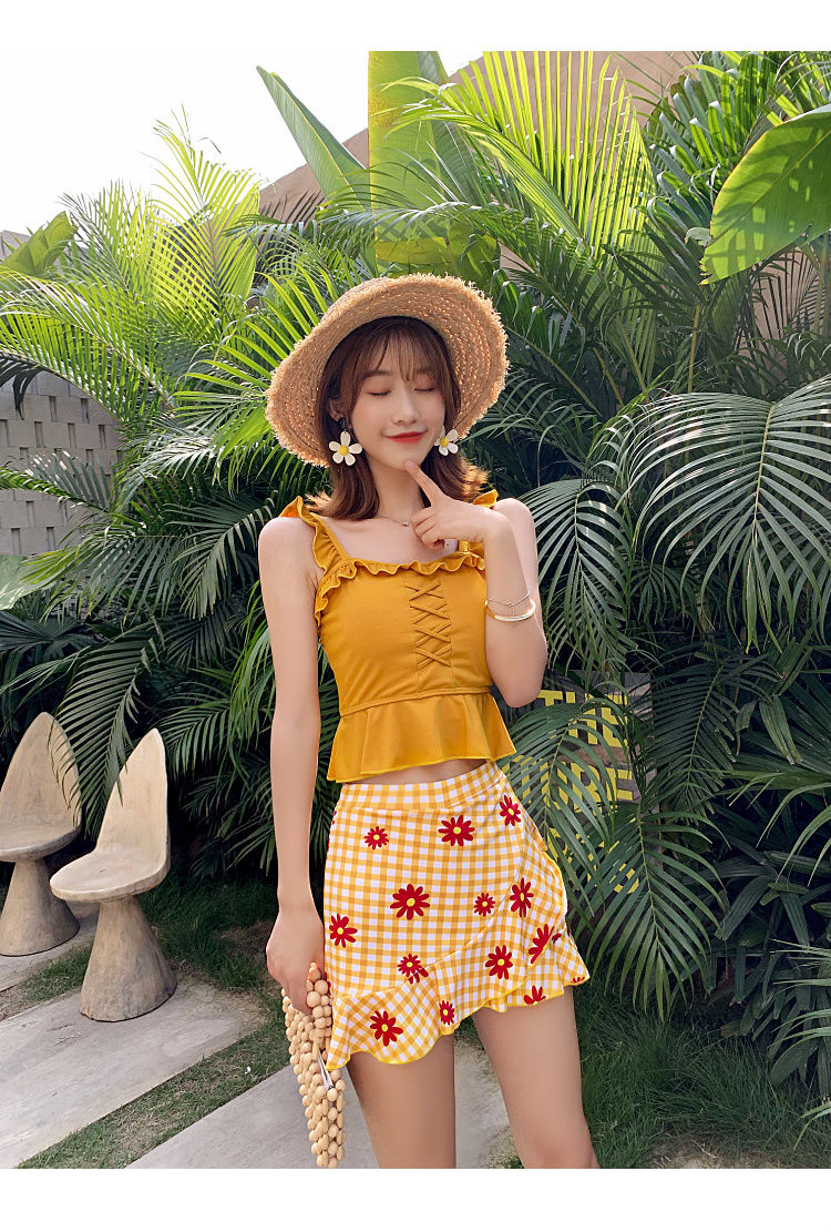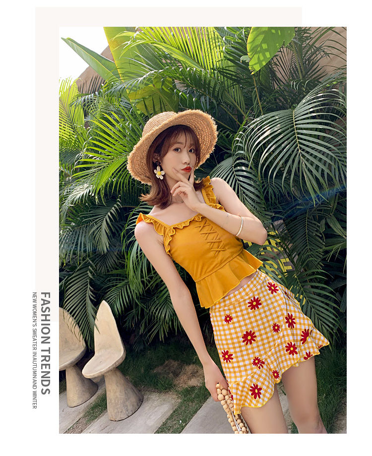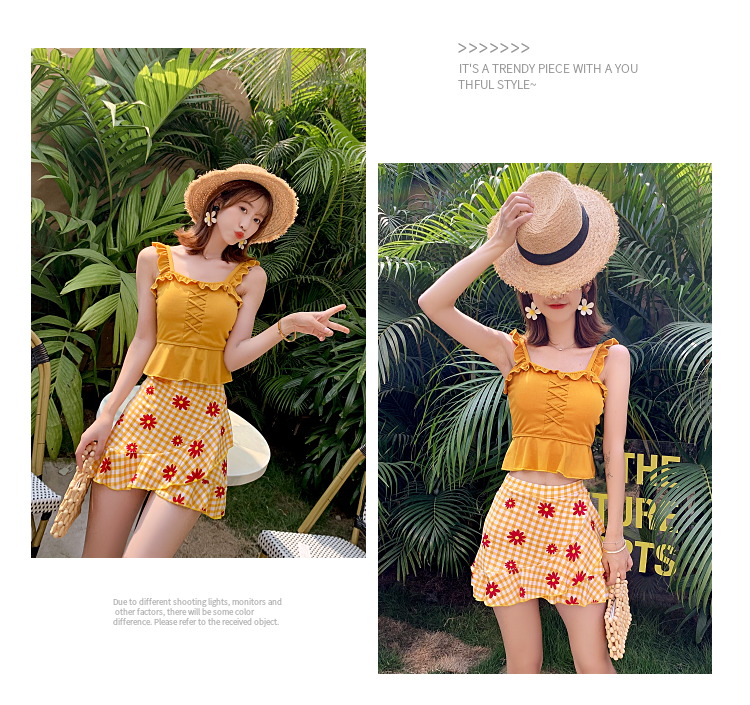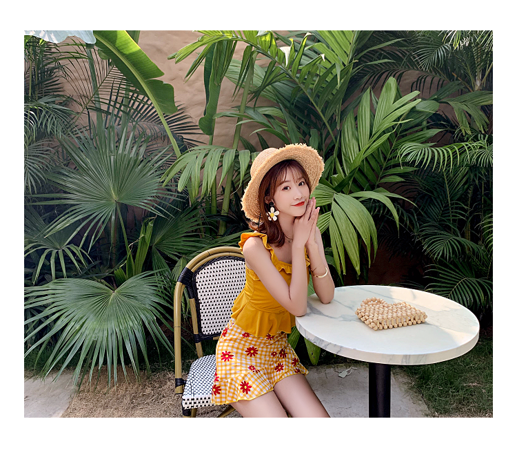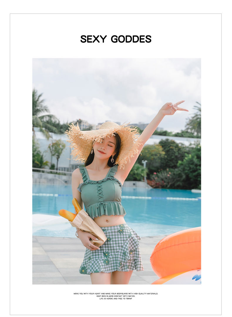 2021新女款游泳衣服分体保守平角泳装女性感学生韩版性感比基尼