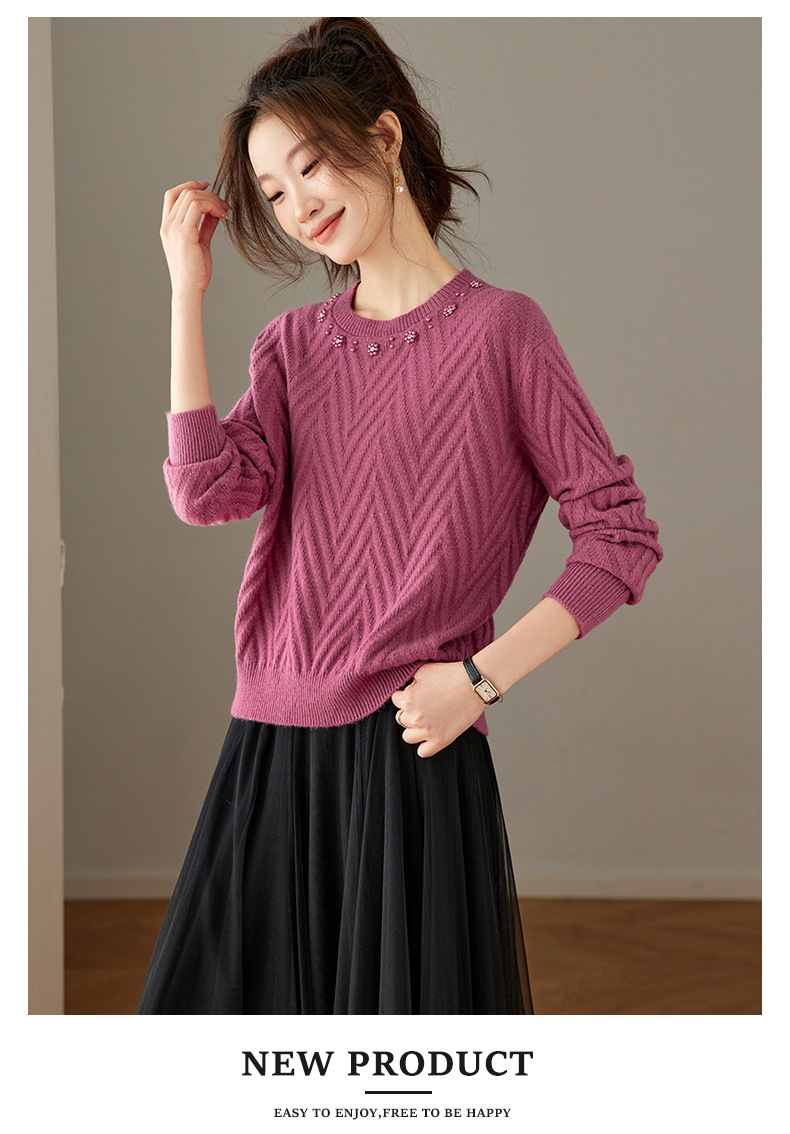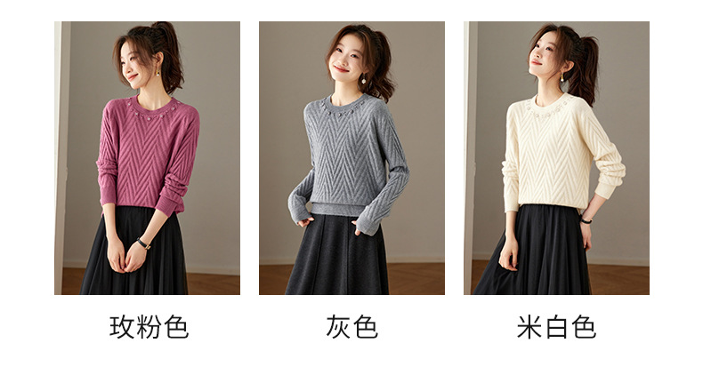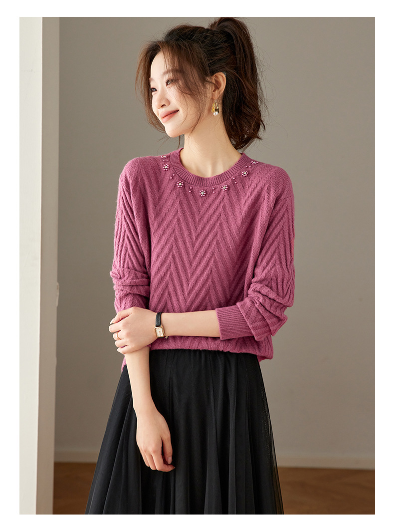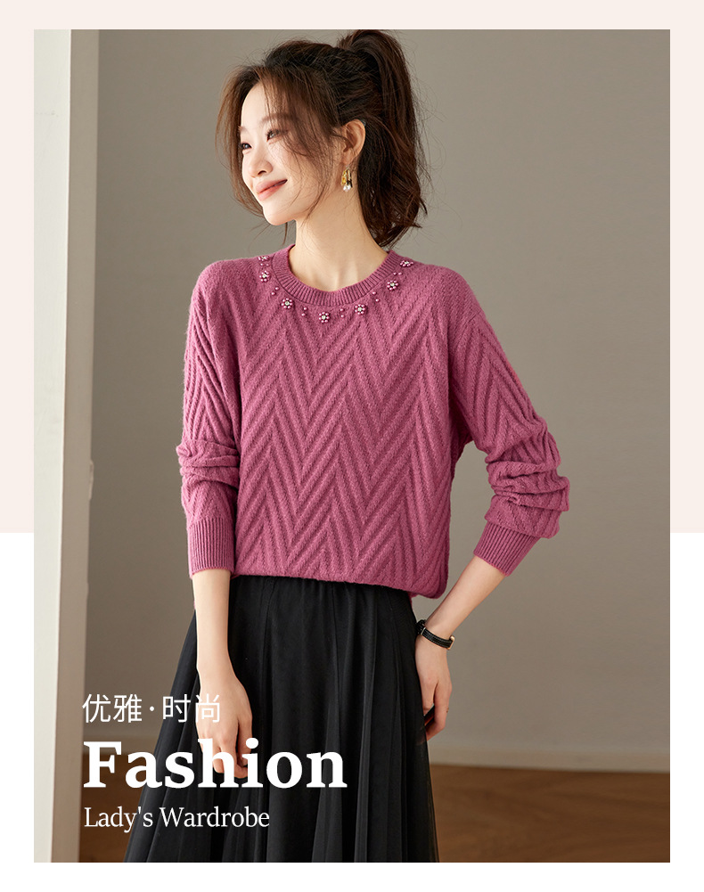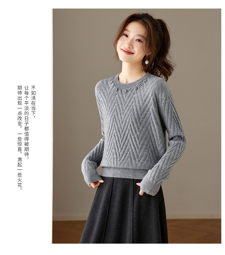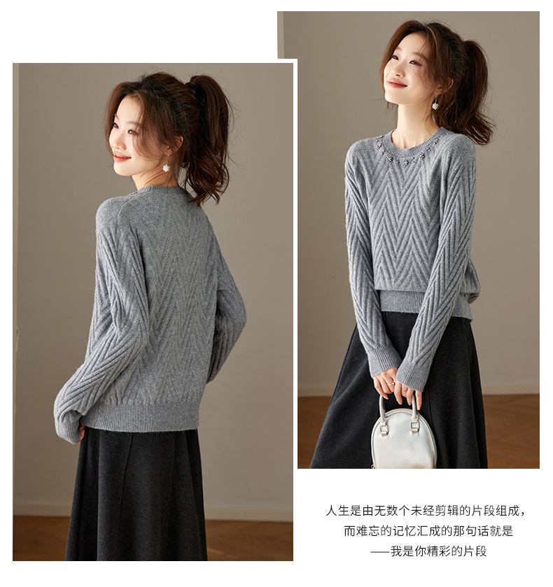 CC好看圆领钉珠毛衣女秋冬2025新款洋气慵懒风宽松内搭针织厚款上衣