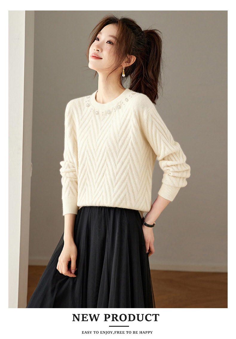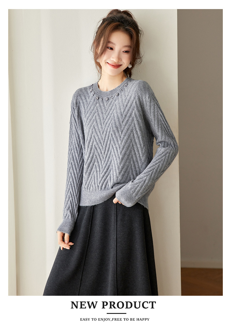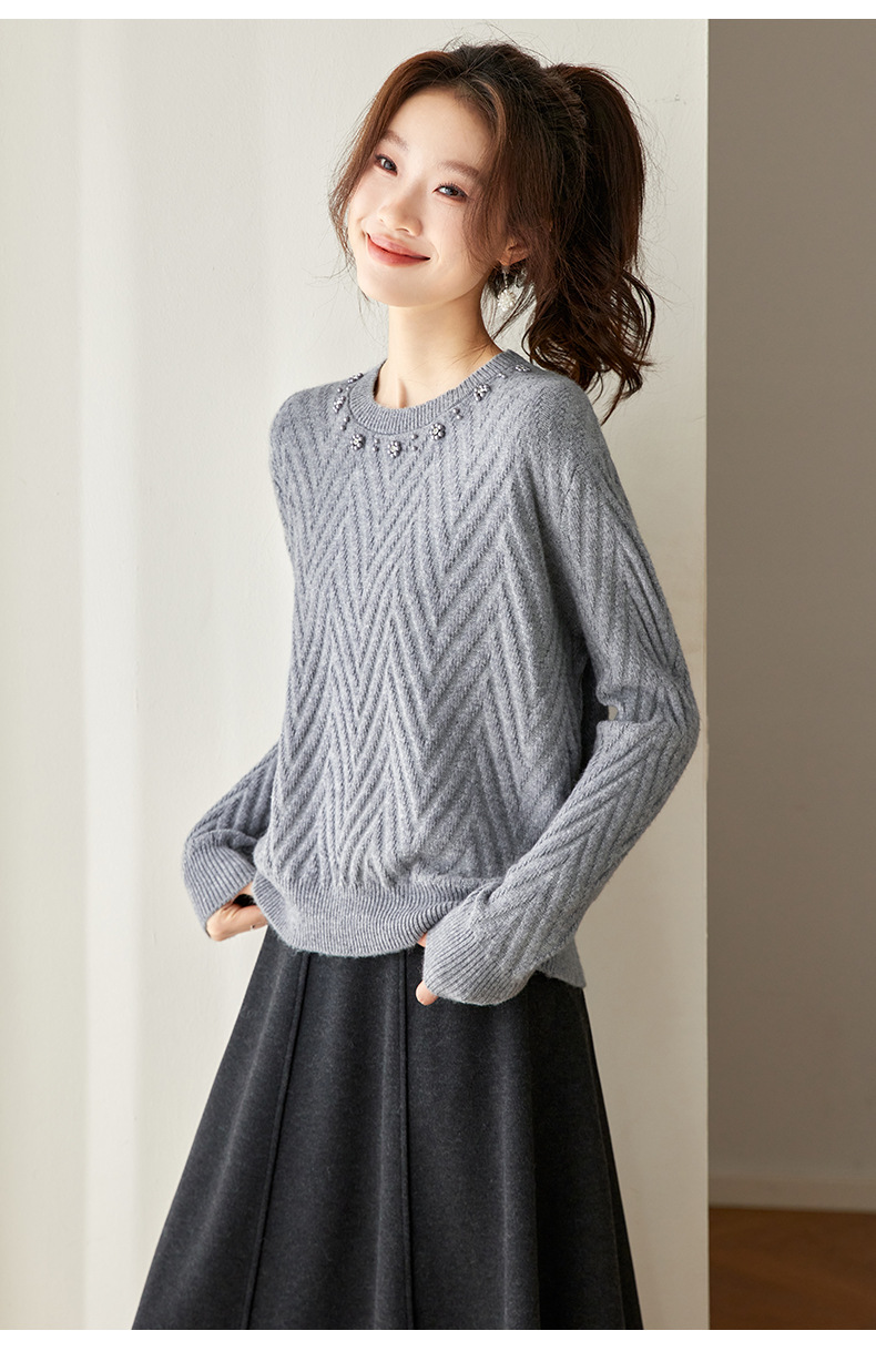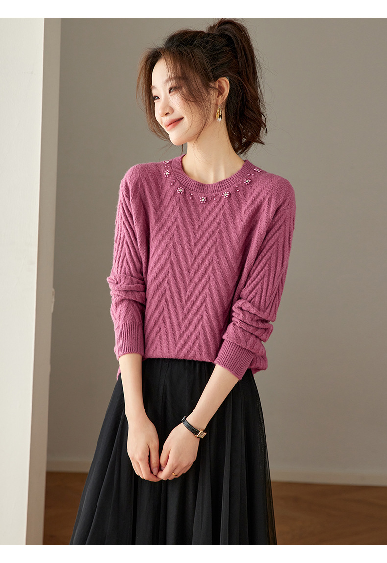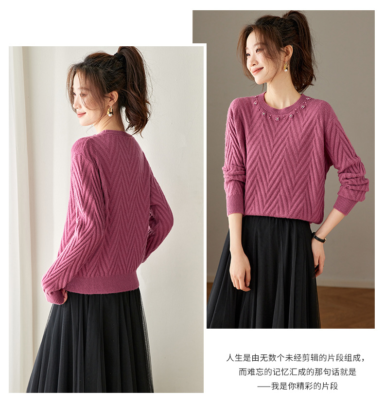 CC好看圆领钉珠毛衣女秋冬2025新款洋气慵懒风宽松内搭针织厚款上衣