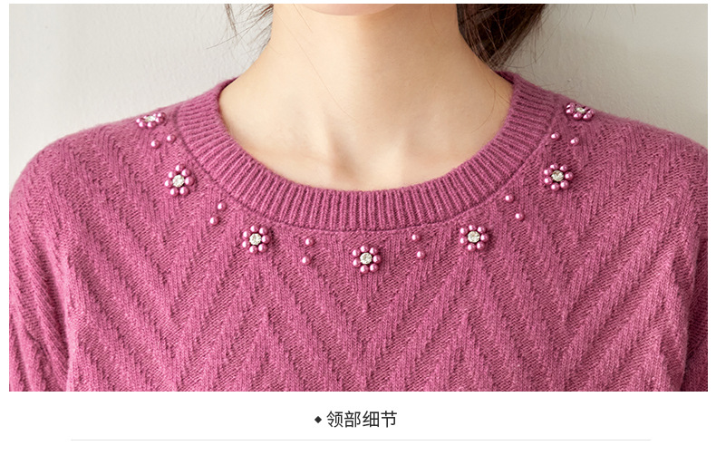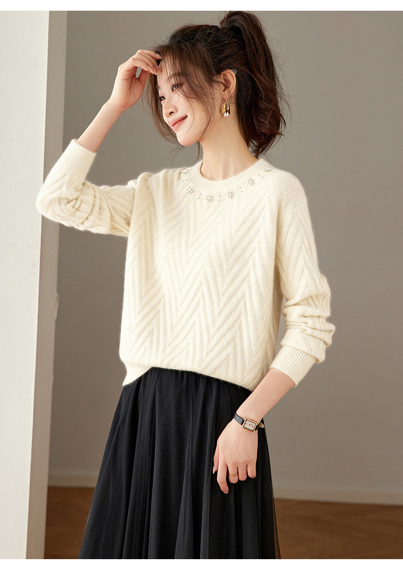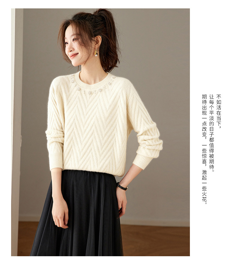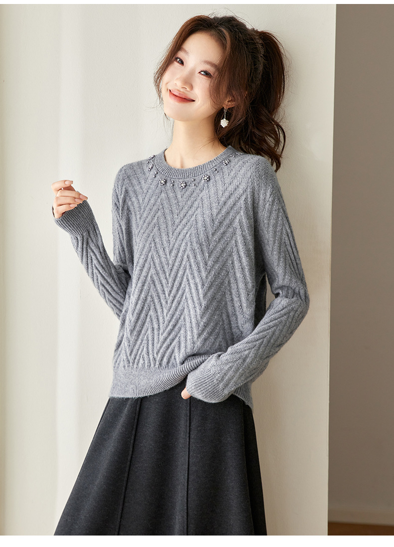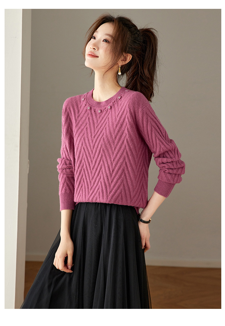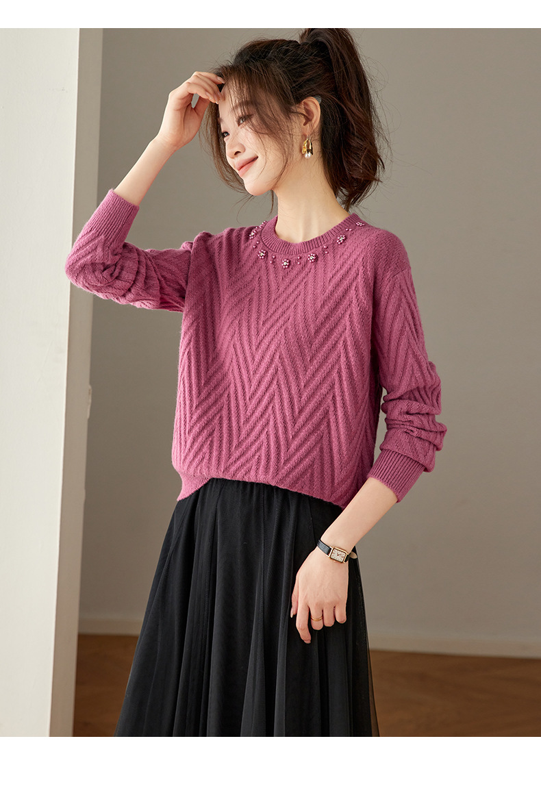 CC好看圆领钉珠毛衣女秋冬2025新款洋气慵懒风宽松内搭针织厚款上衣
