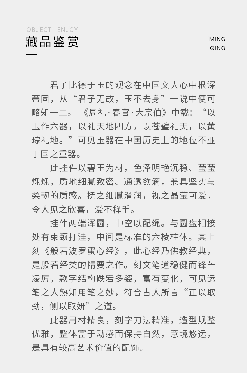 清代 碧玉心经挂件