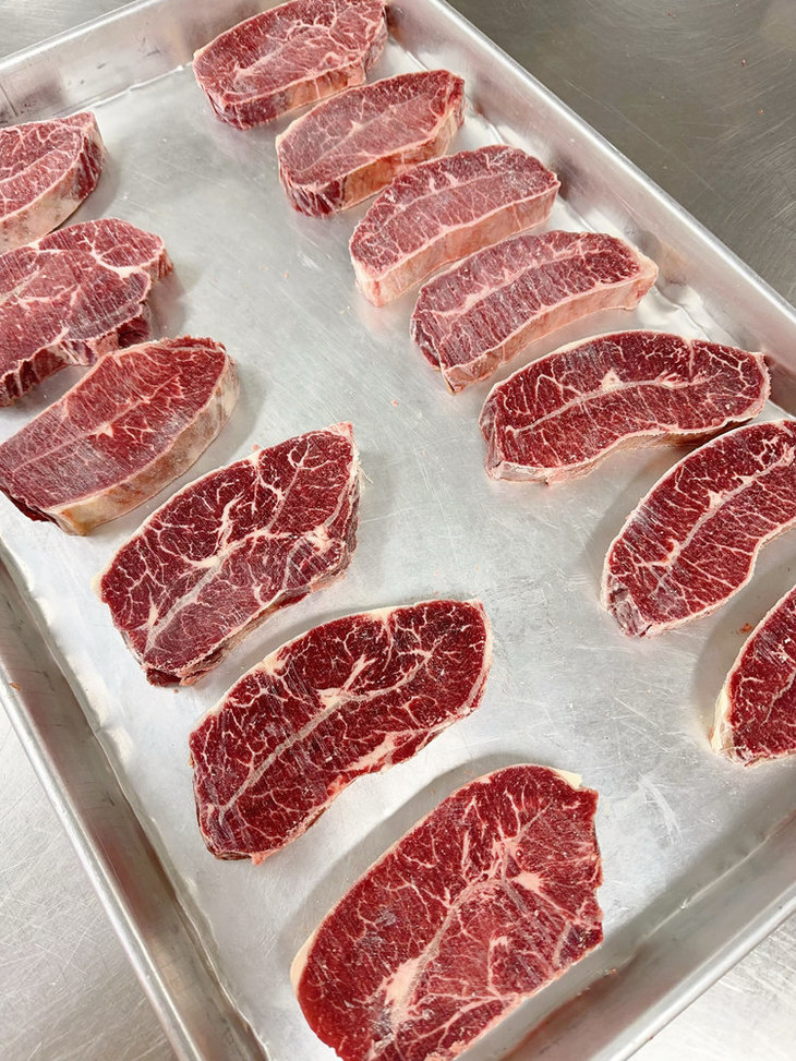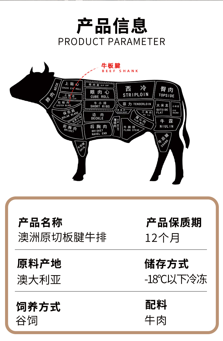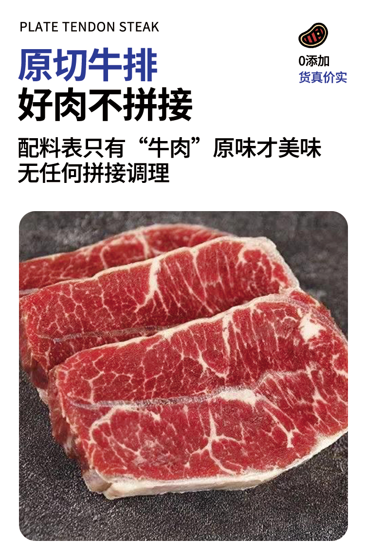 🔺独特切面:板腱牛排有着极具辨识度的切面,纹理规则且美观,因中间有一条透明的嫩筋,切开来形似肥美的 “牡蛎”,这一独特外观不仅使其在众多牛排部位中脱颖而出,视觉上就给人一种精致、高品质的印象。