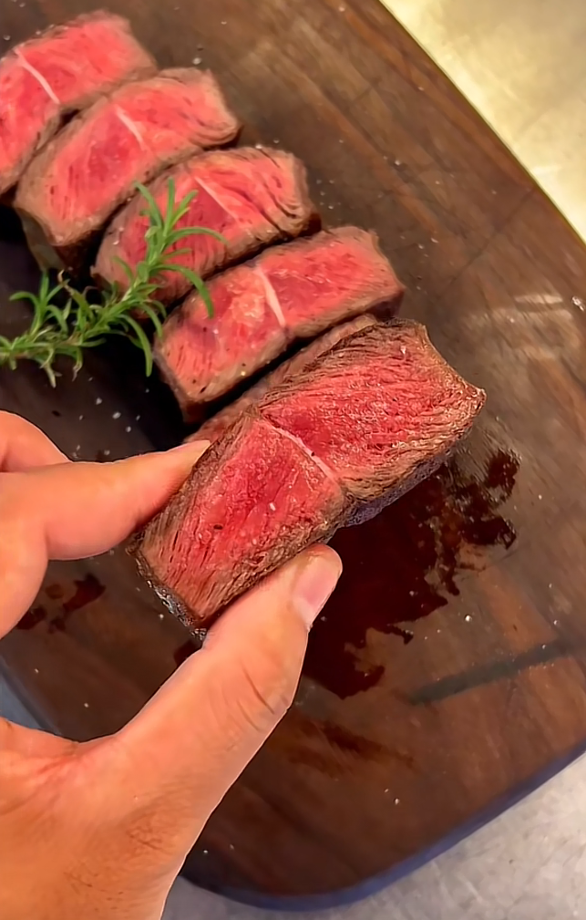 🔺鲜嫩多汁:肉质本身极为鲜嫩,咬下去汁水四溢,仿佛每一口都能感受到肉汁在齿间 “爆浆”,初尝是纯粹的肉香,继而伴随着淡淡的奶香与牛油甜香,风味层次丰富,越嚼越香。