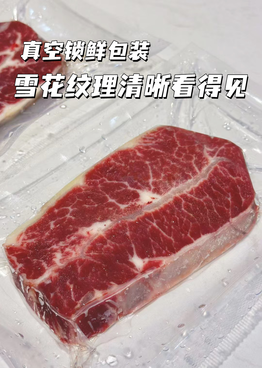 🔺雪花纹理:丰富的脂肪均匀分布在肌肉纤维之间,形成漂亮的雪花纹理,这是其鲜嫩多汁与醇厚风味的天然 “预告”,从外观上便能直观感受到它的奢华口感。