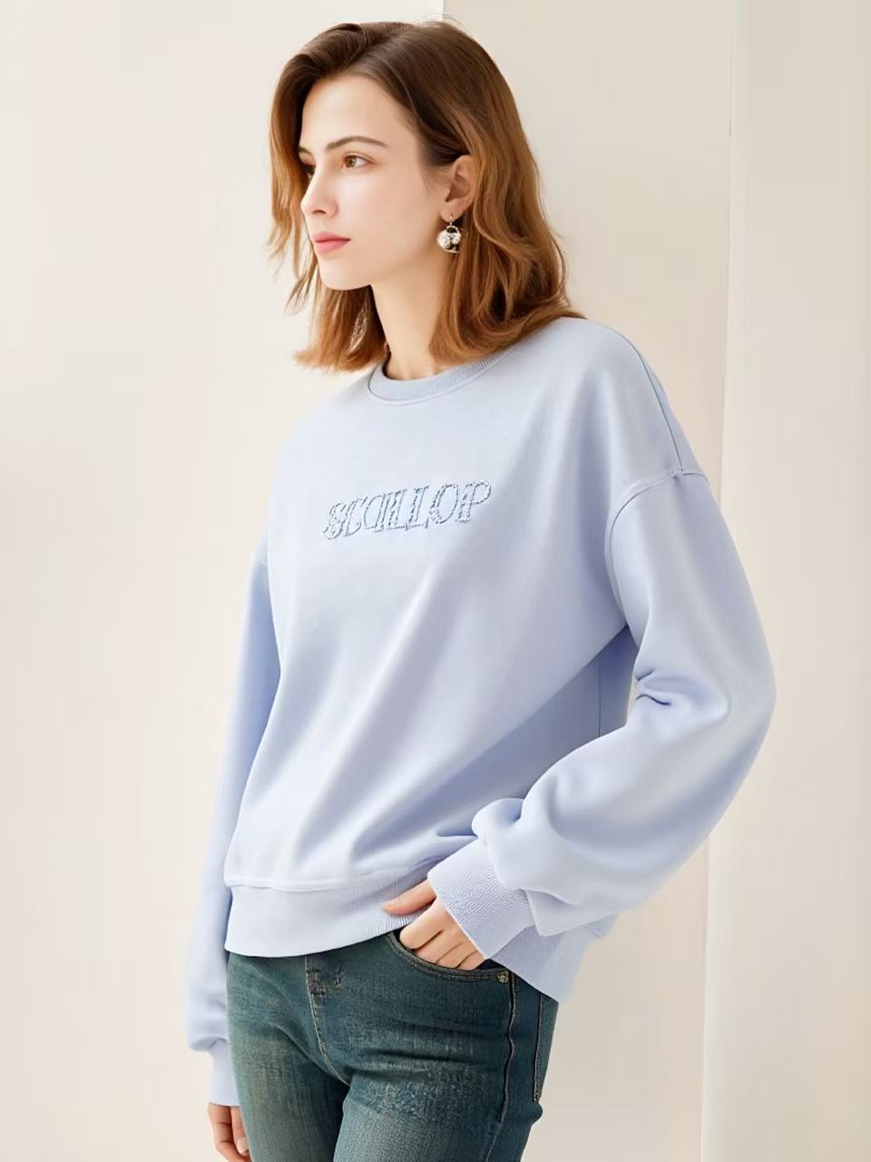 【工艺系列卫衣】刺绣款~95%棉蕾丝花草绣SC字母卫衣-喜出