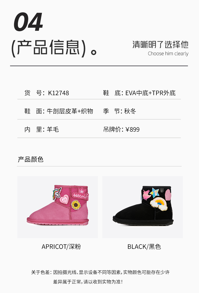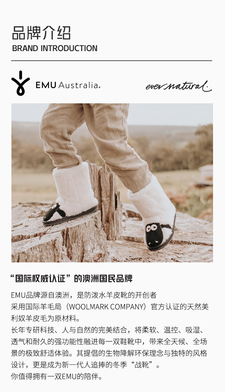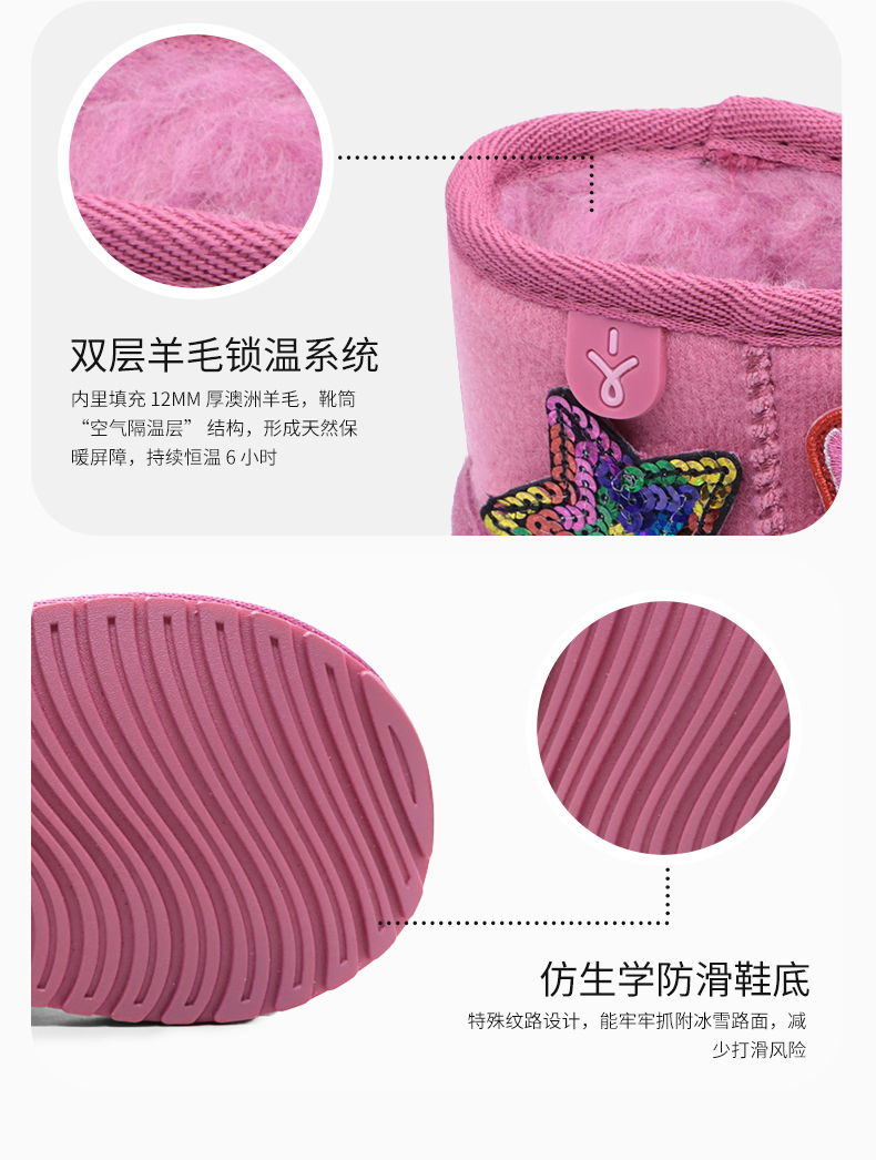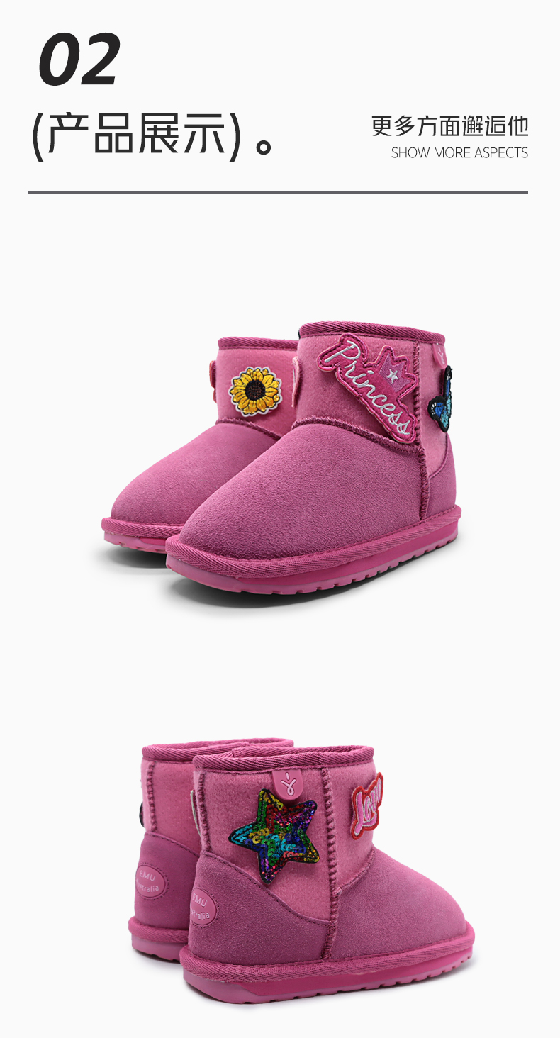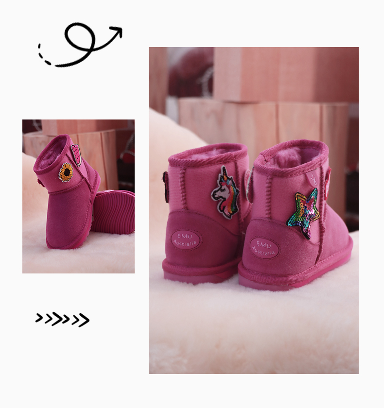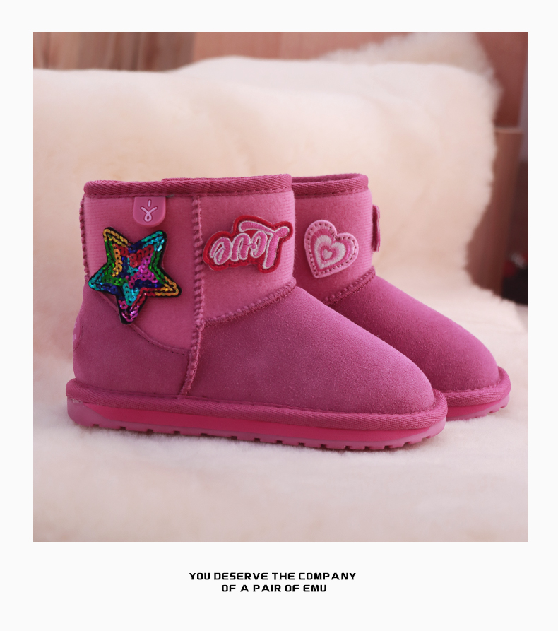 EMU童鞋雪地靴冬季女童棉靴加绒加厚卡通儿童真羊毛保暖棉鞋