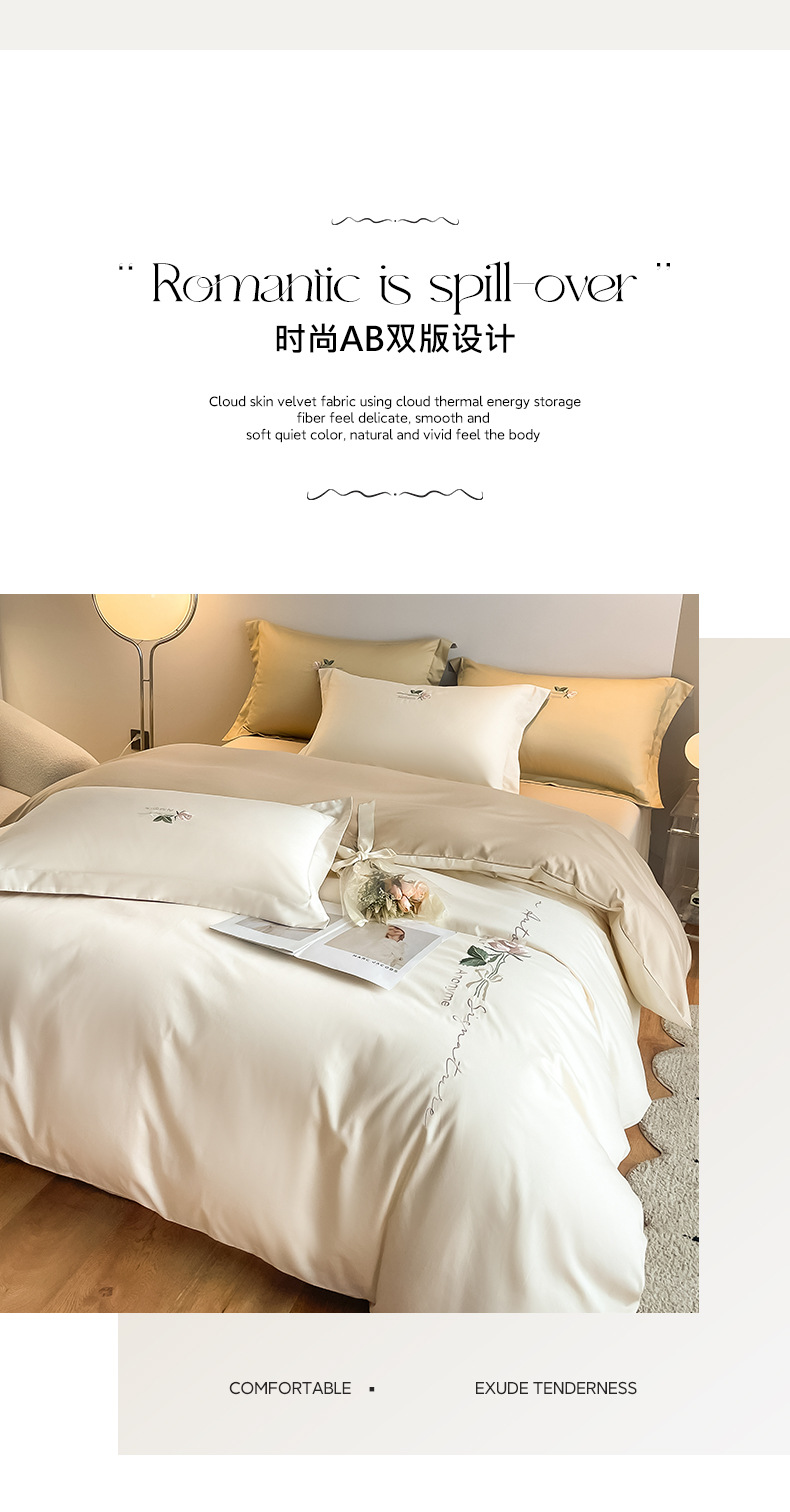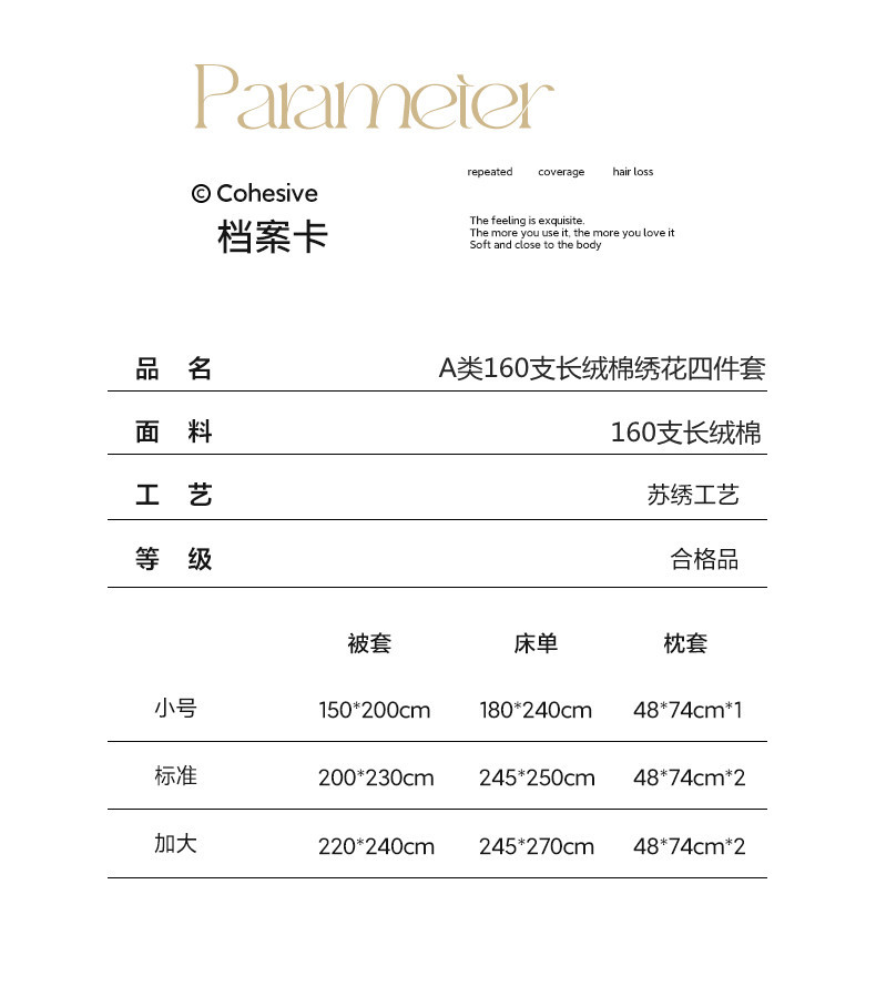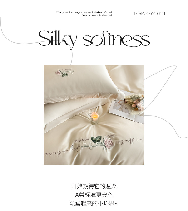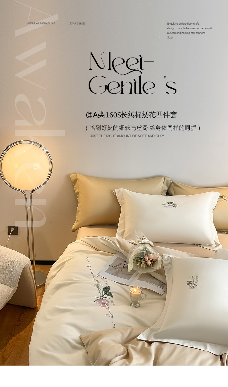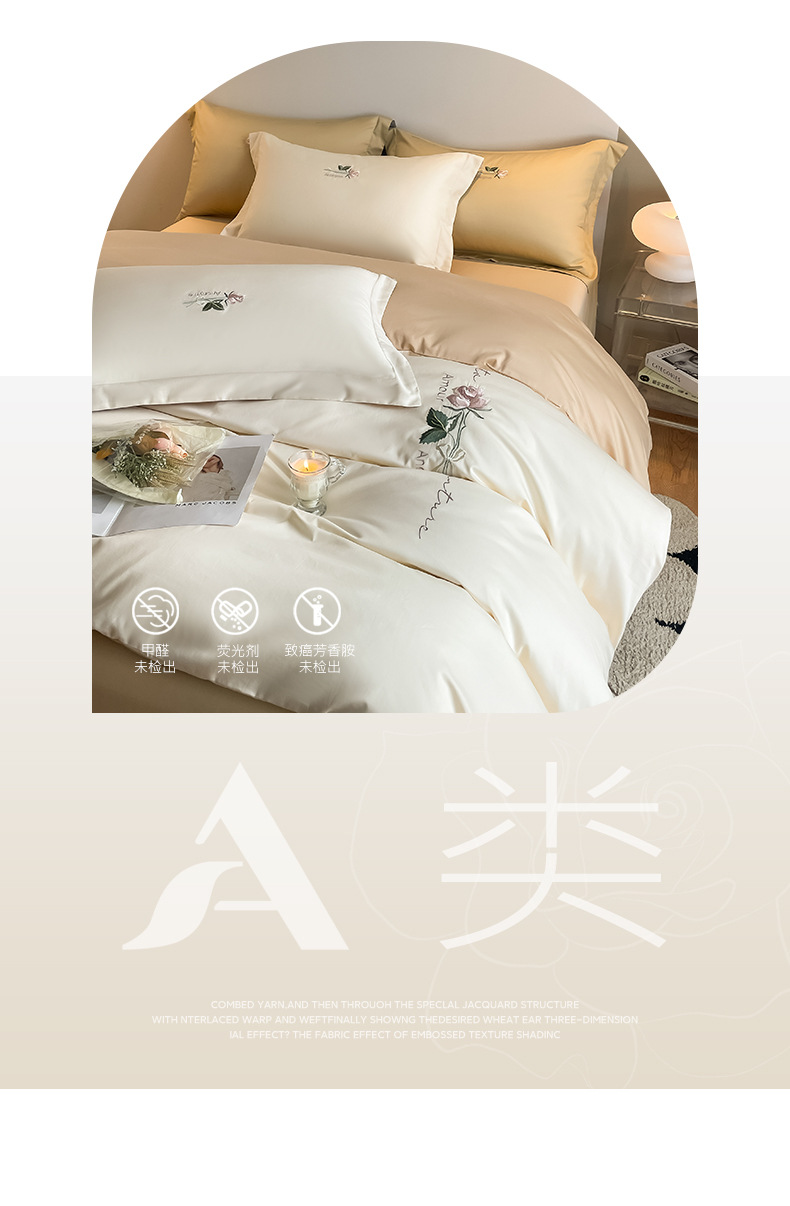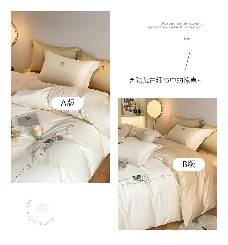 A类160支轻奢高档长绒棉四件套纯棉床单被套全棉裸睡亲肤床上用品