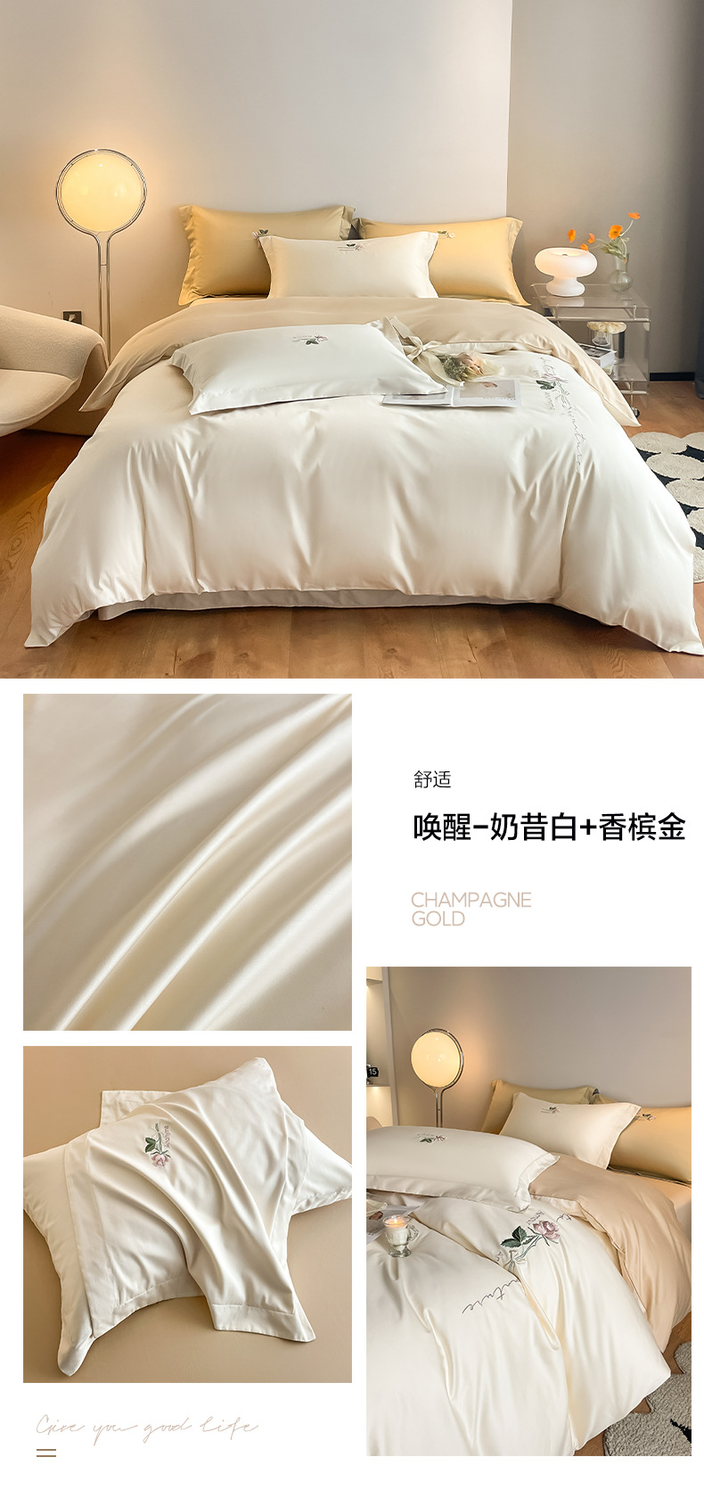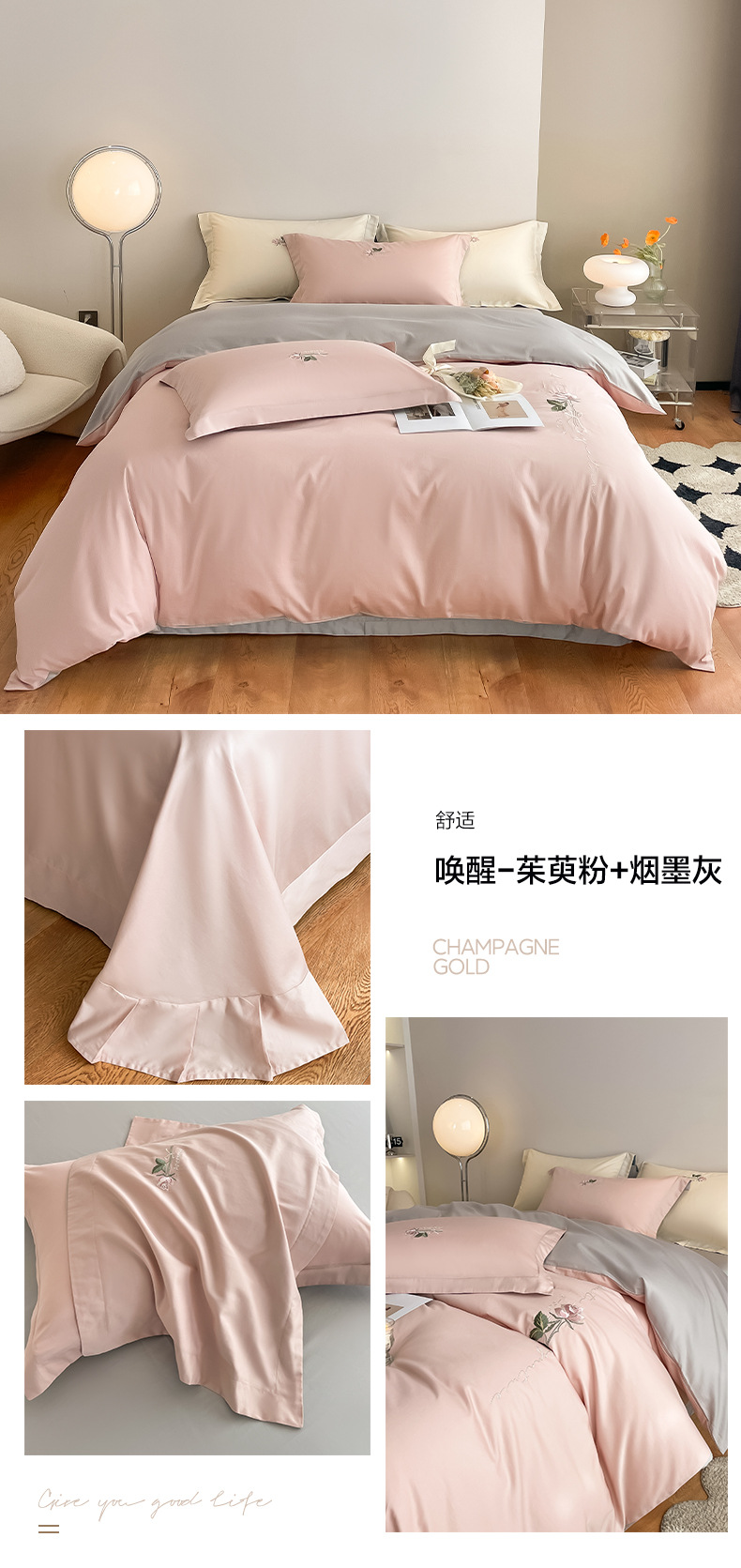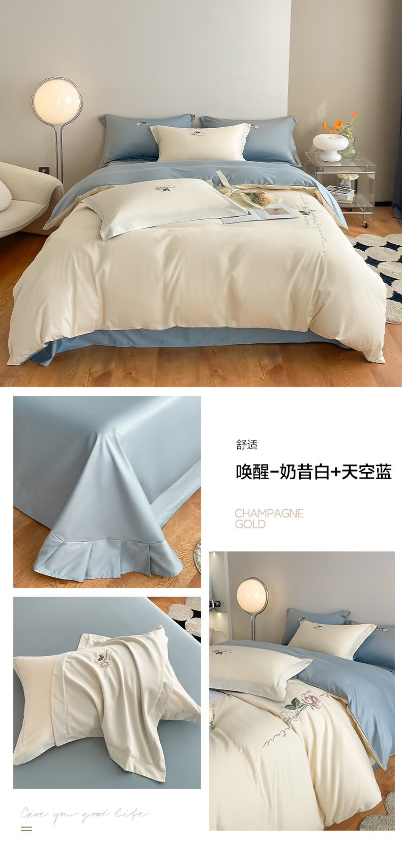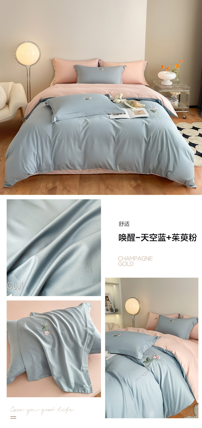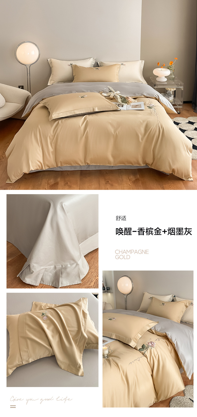 A类160支轻奢高档长绒棉四件套纯棉床单被套全棉裸睡亲肤床上用品