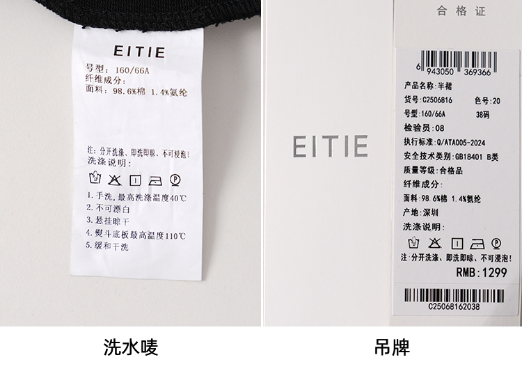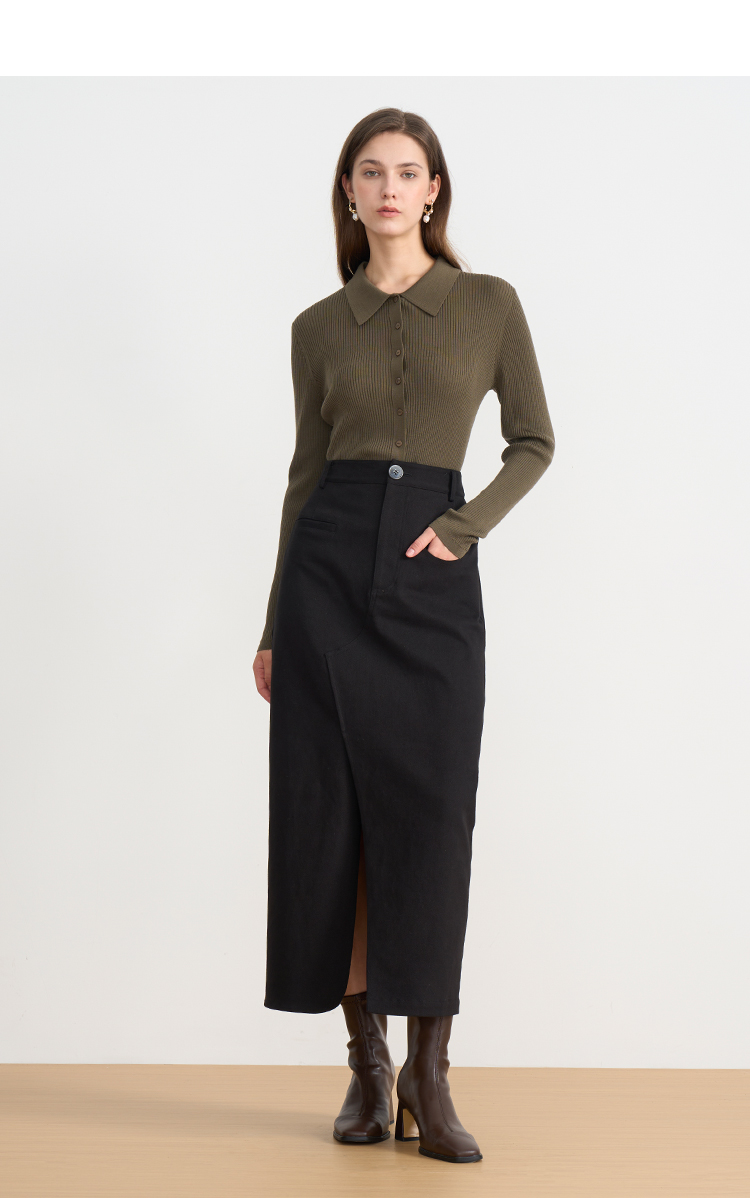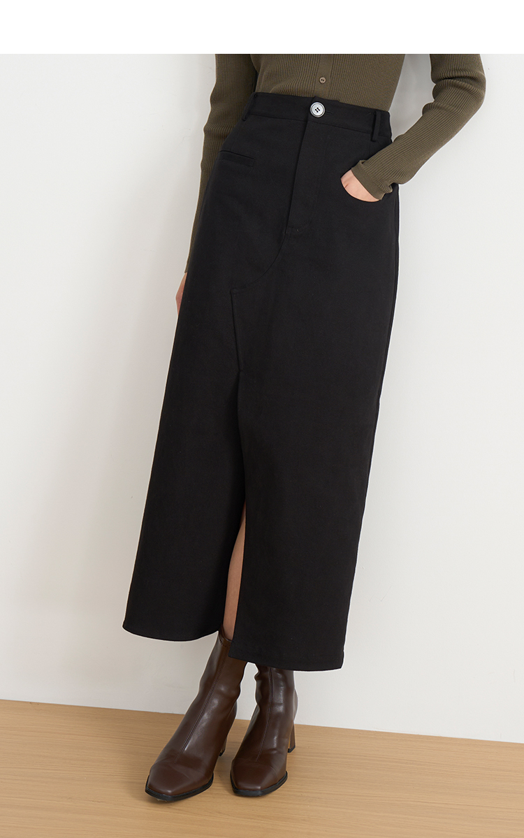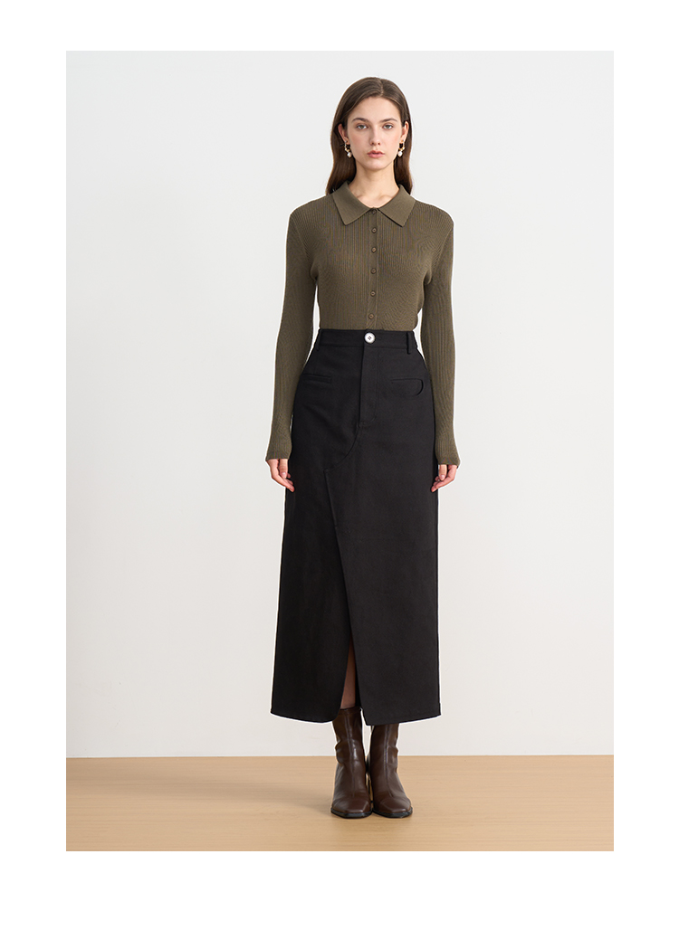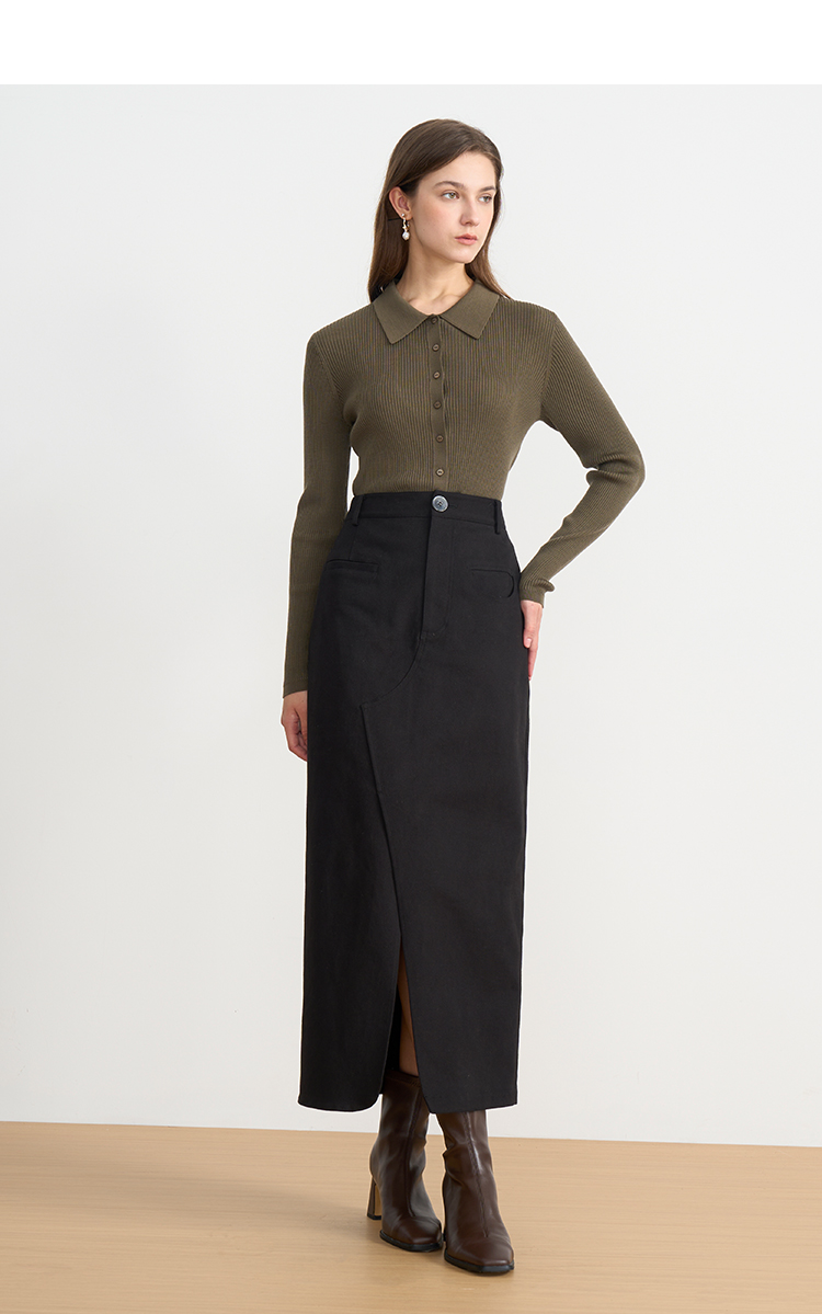 EITIE爱特爱挺括工装设计感不对称高腰黑色长款半裙2025秋季新款C2506816