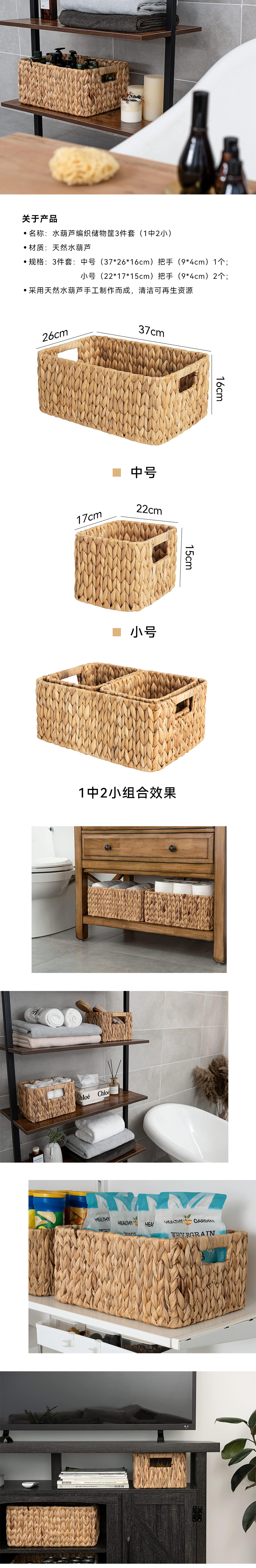 手工编织水葫芦藤编收纳盒 创意草编收纳篮可放卧室、浴室、食品储藏室、货架