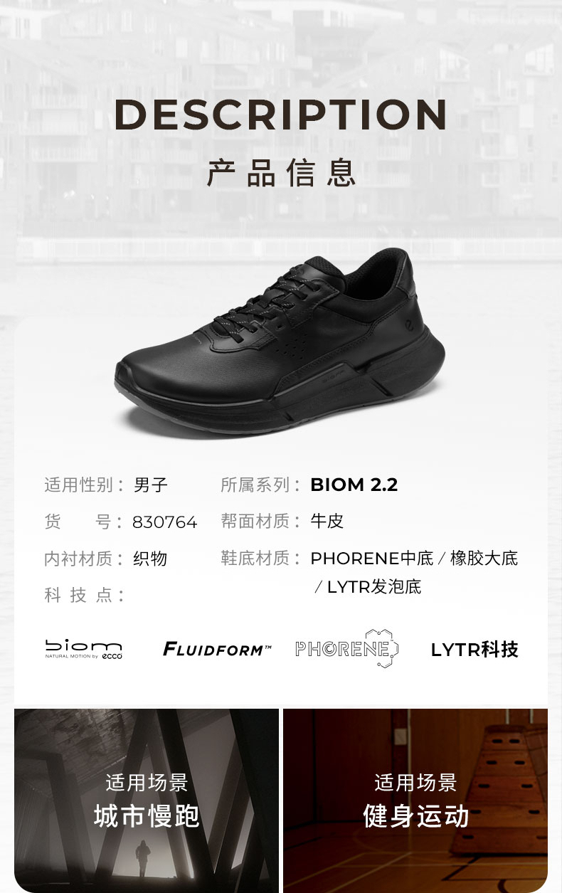 ECCO爱步 男鞋 新款跑步鞋舒适运动休闲鞋 健步BIOM2.2