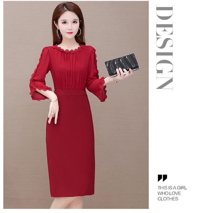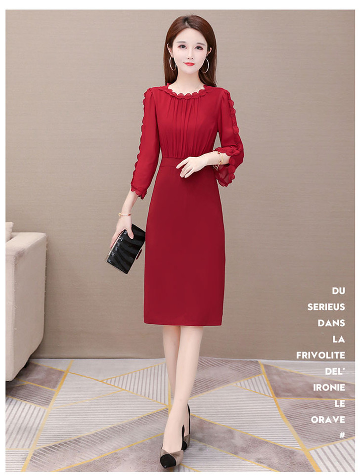 气质减龄,七分袖乔其纱连衣裙YW-KED932F03