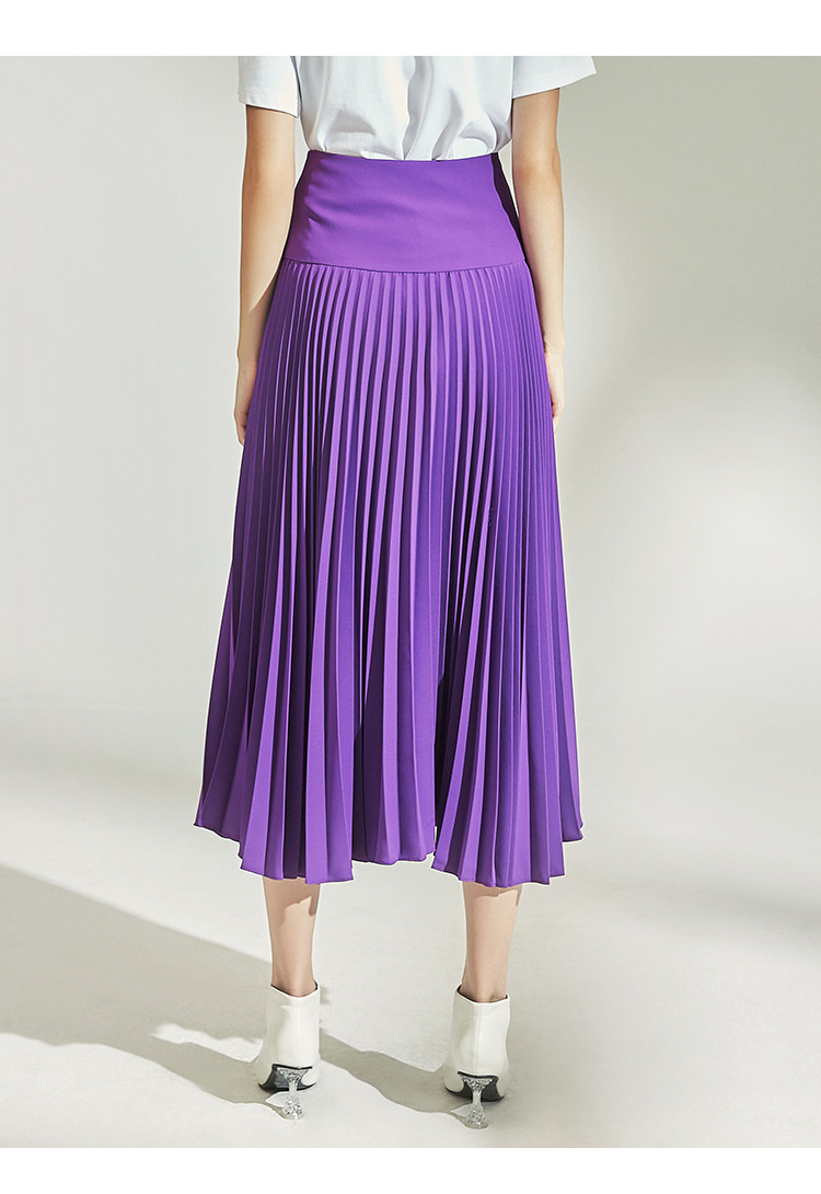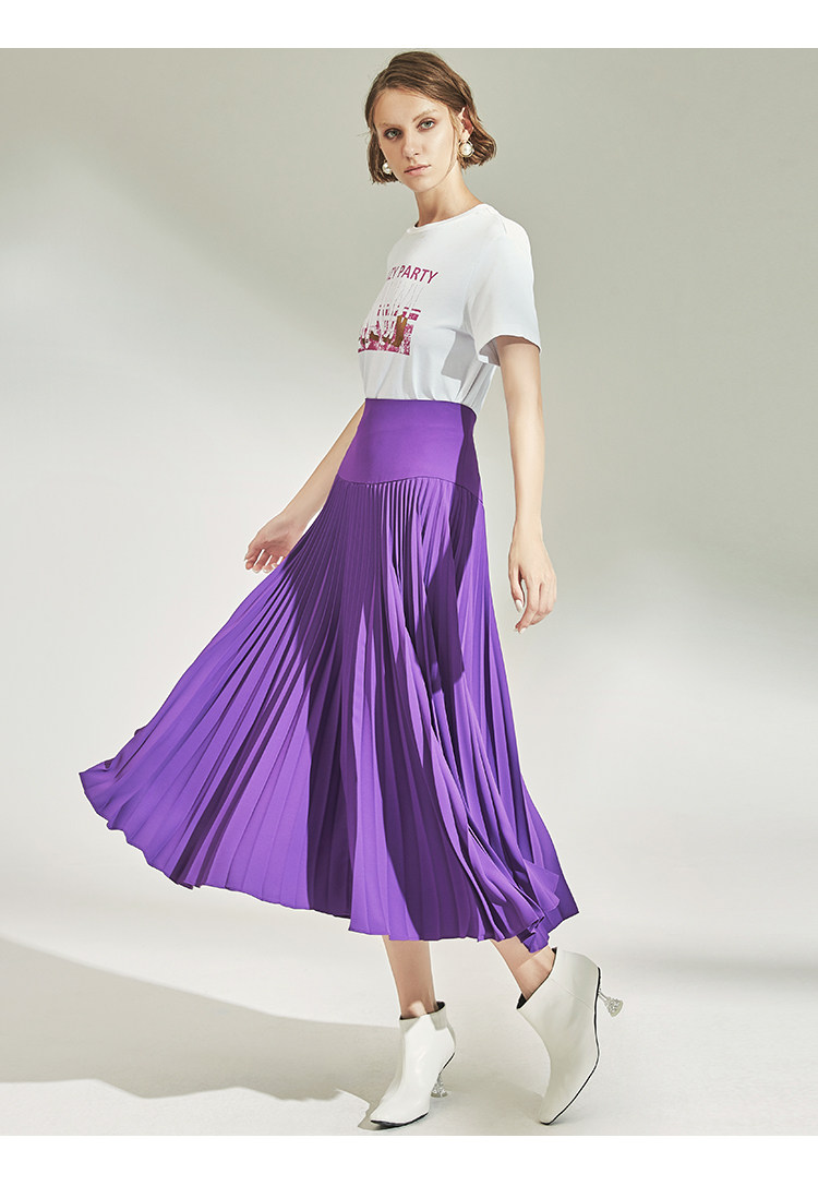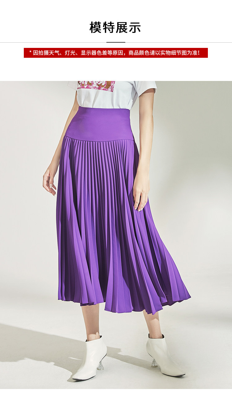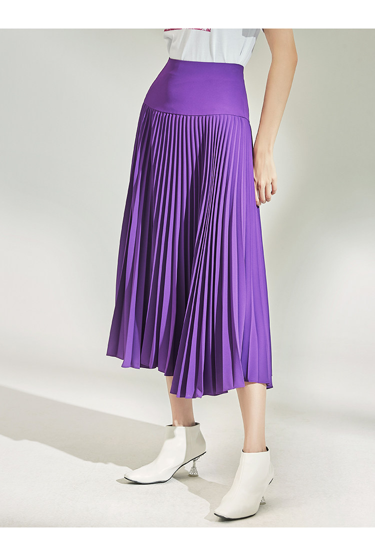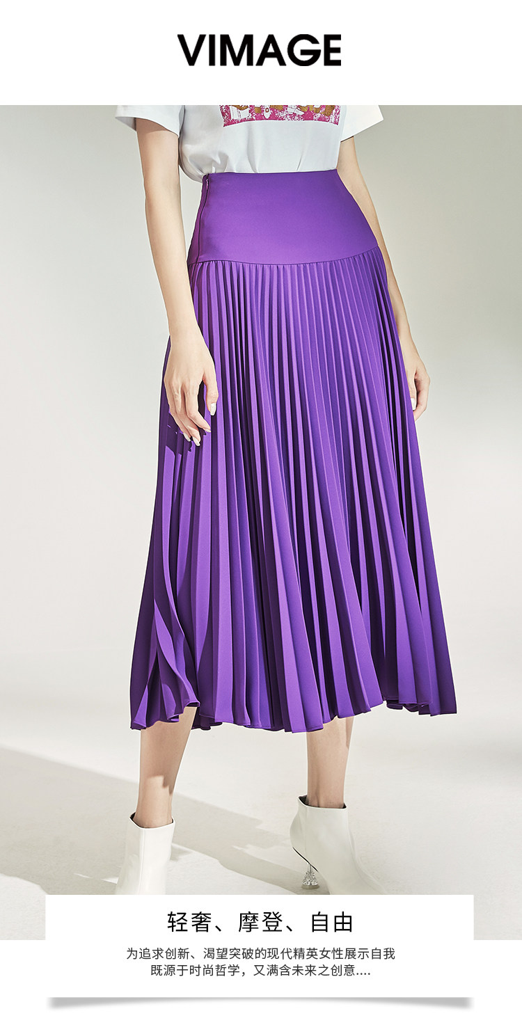 VIMAGE纬漫纪女装秋季紫色时尚高腰显瘦百褶半身裙中长款V1206804