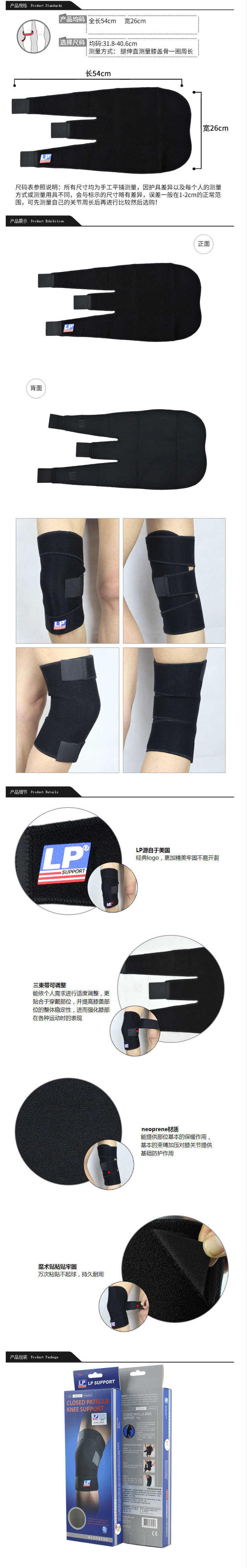 LP单片运动用可调式护膝(一只)756跑马拉松比赛越野跑步耐力跑训练慢跑健身徒步运动