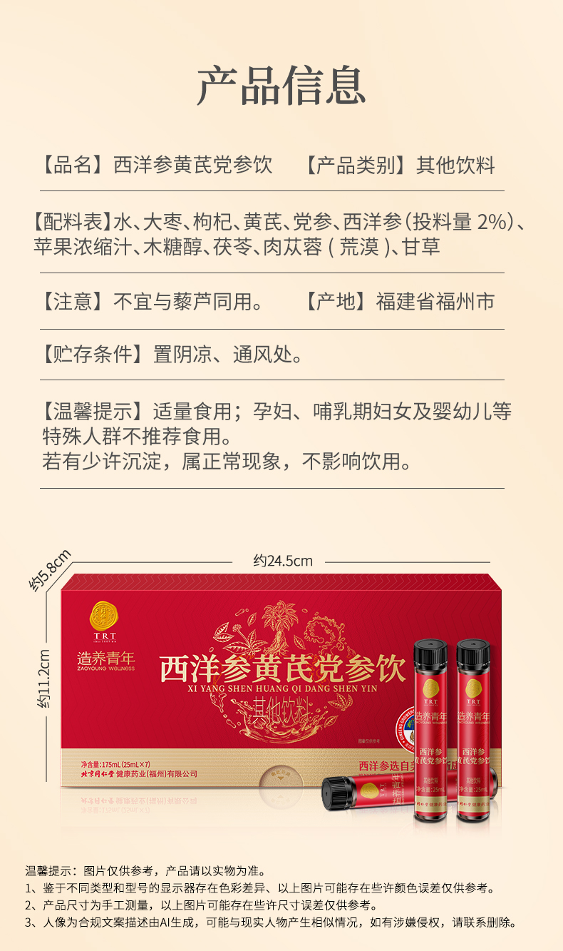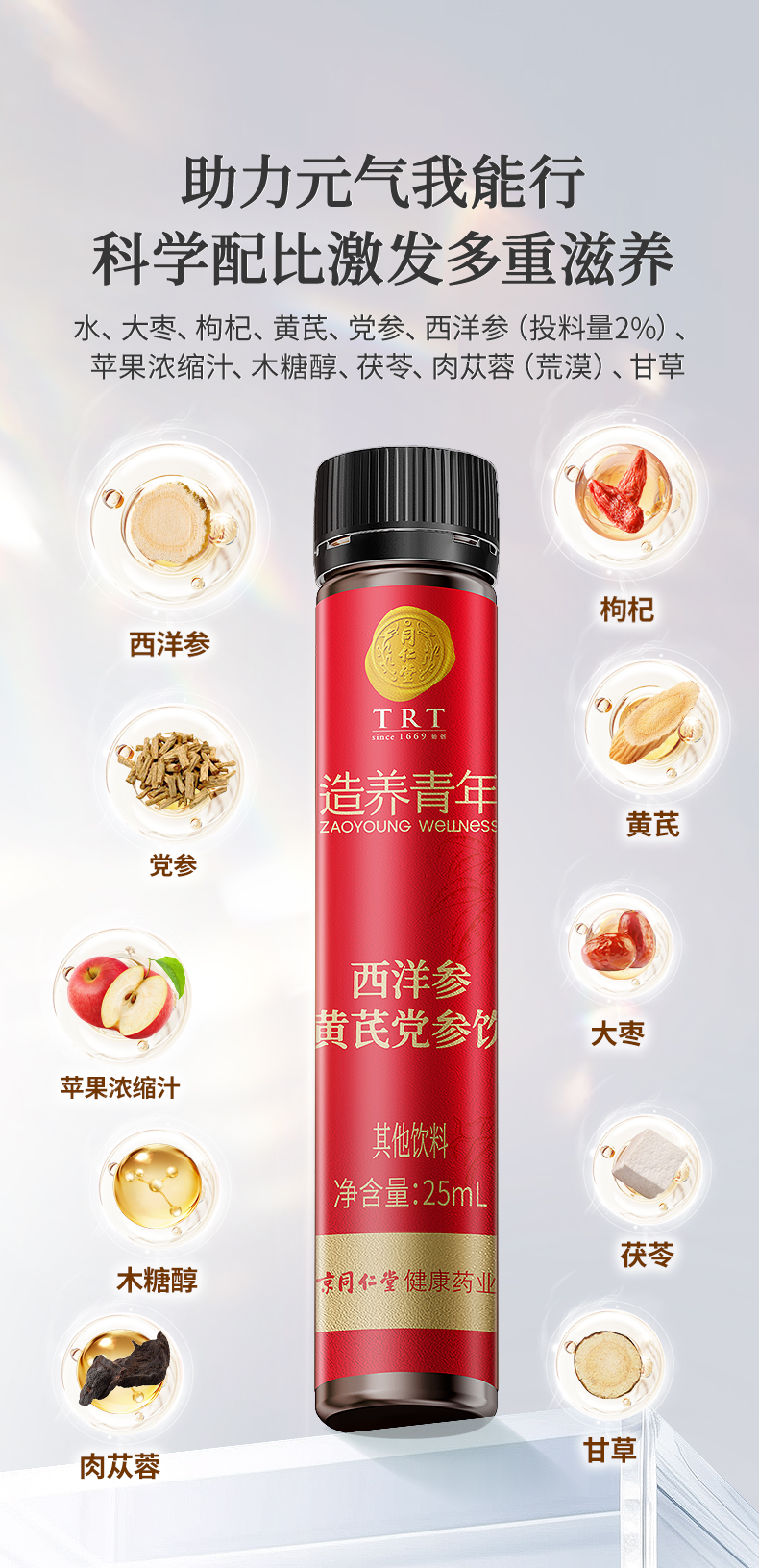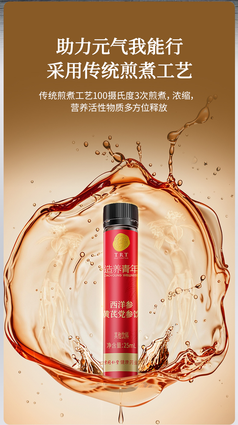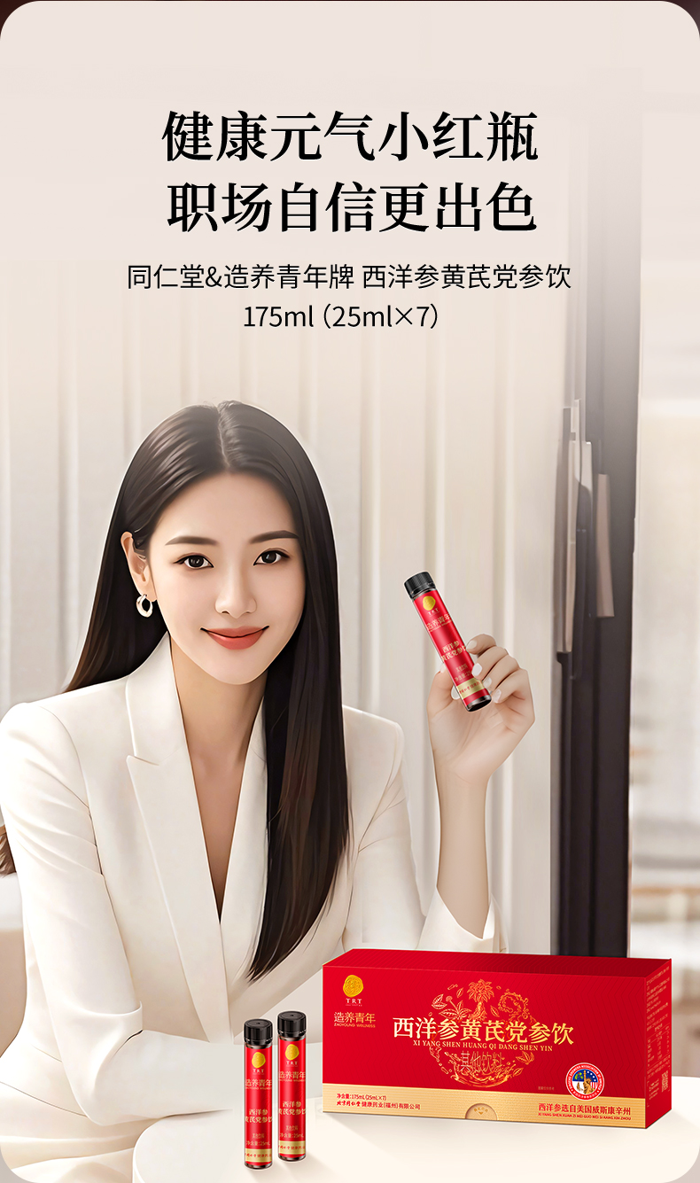 【正宗同仁堂品牌】北京同仁堂 造养青年 西洋参黄芪党参饮 175ml(25ml×7) 助力元气 便携随饮SY