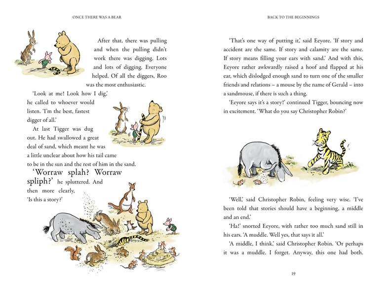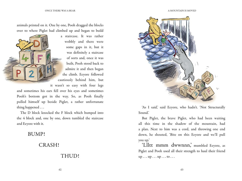 The stories in this 100th Anniversary range’s hardback edition are decorated with beautiful illustrations by Mark Burgess in the style of E.H.Shepard. Mark is uniquely suited to this having also illustrated Return to the Hundred Acre Wood, The Best Bear in All the World, Tales from the Forest and Winter in the Wood.