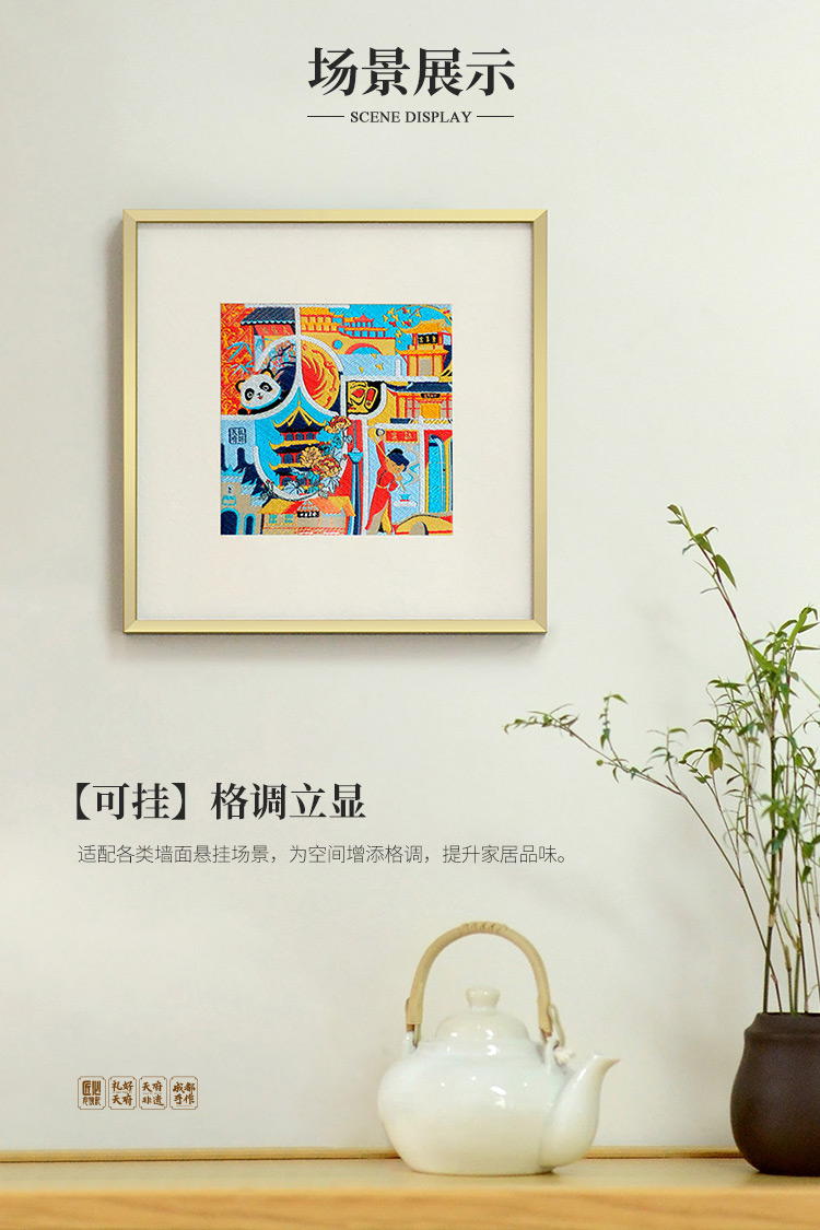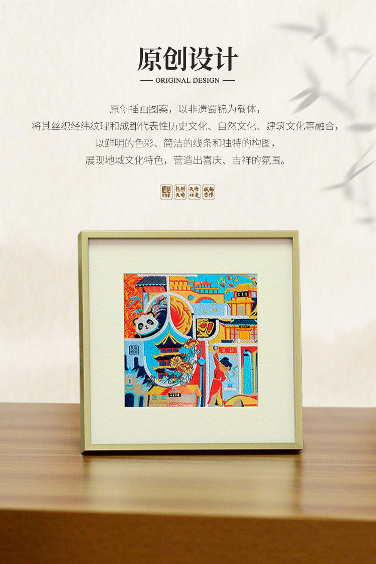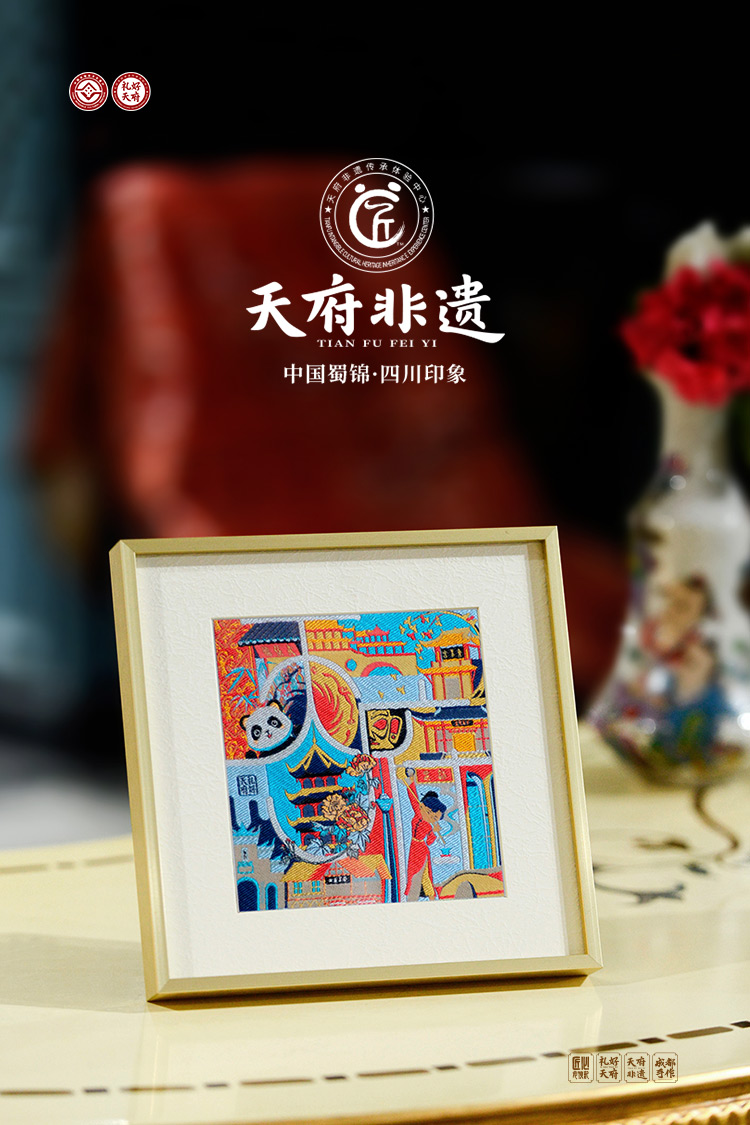 【中国蜀锦•四川印象系列一】老伙记非遗蜀锦摆件 印象天府手工织锦装饰画 四川文创礼品送领导 成都文化手信 高档丝绸家居书房摆台织锦画