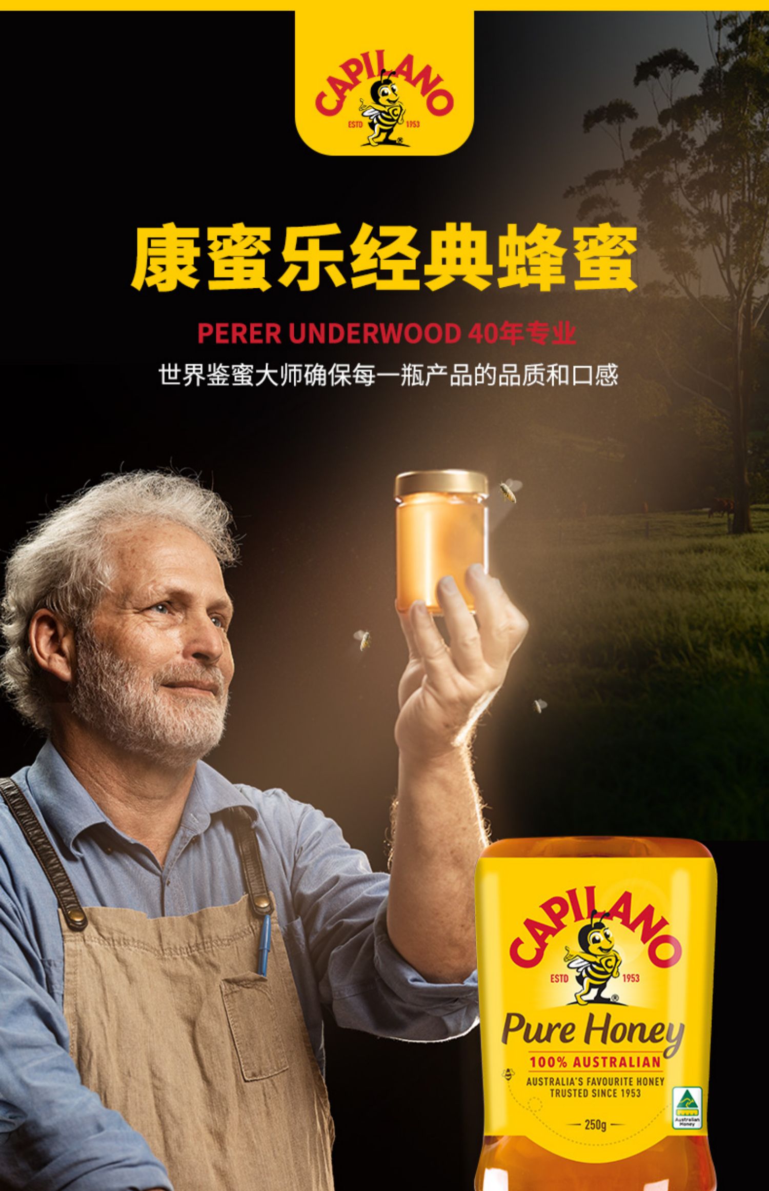 澳大利亚康蜜乐蜂蜜倒立装250g/033640 口感健康早餐加入蜂蜜气味清甜