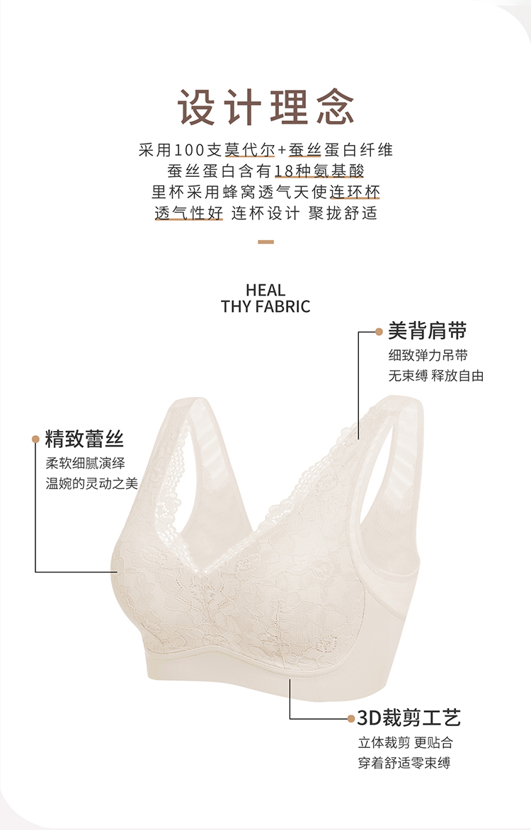 (299元/2件)时尚蕾丝胶原蛋白聚拢背扣文胸53064
