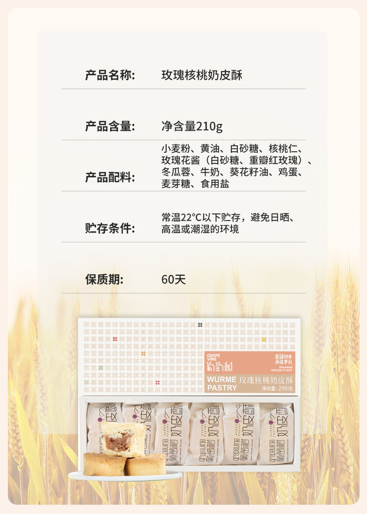葡萄树奶皮酥伴手礼盒 新疆美食传统小吃送礼点心糕点特产 坚果杏子玫瑰核桃仁 口感酥脆老少皆宜 210g/盒