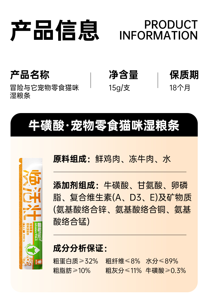 冒险与它功能猫咪零食条 猫条鲜肉补水 高适口性 整箱=1000支