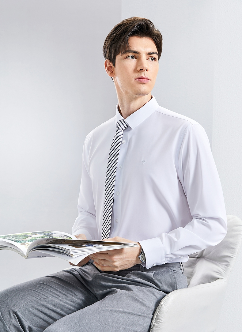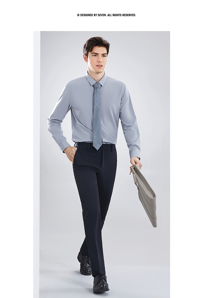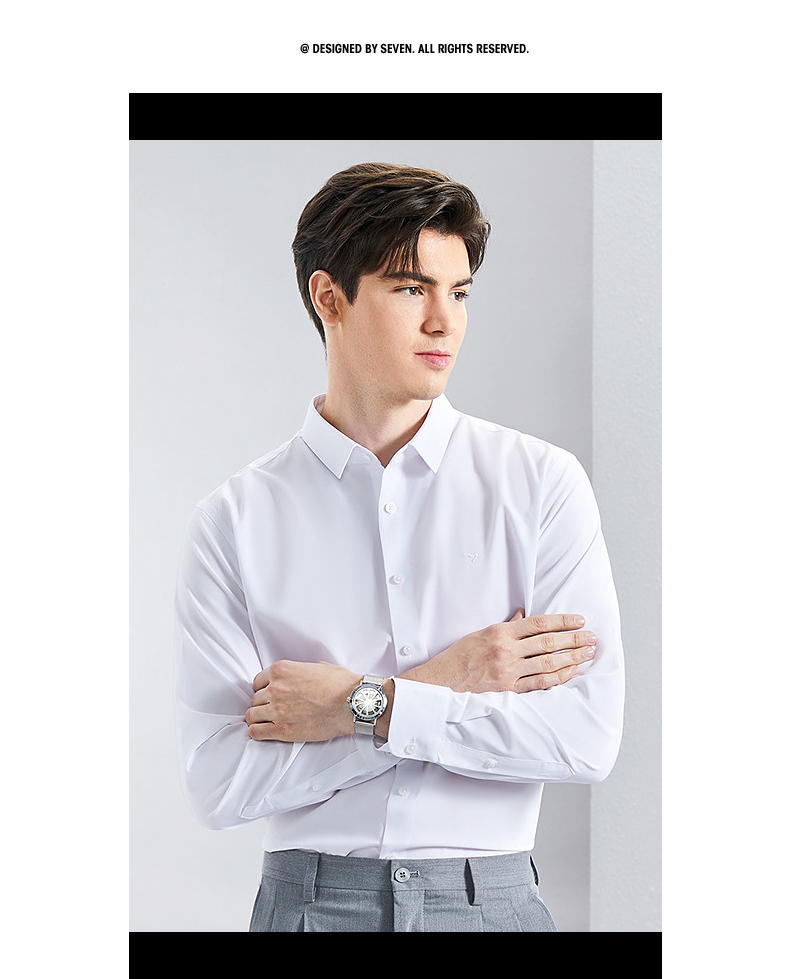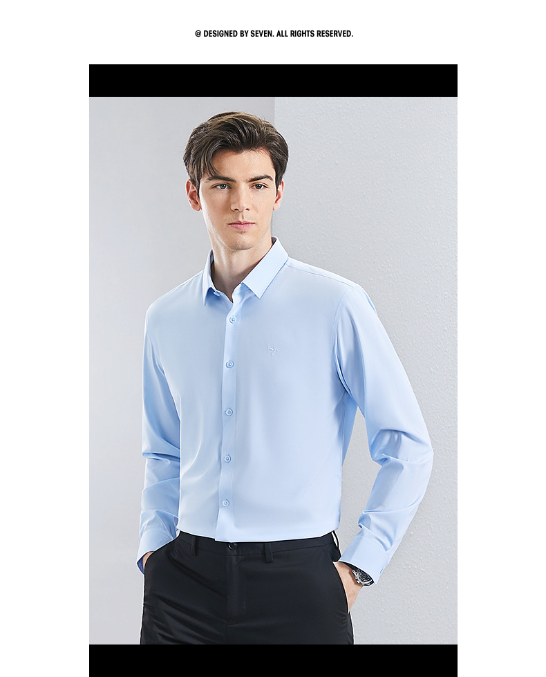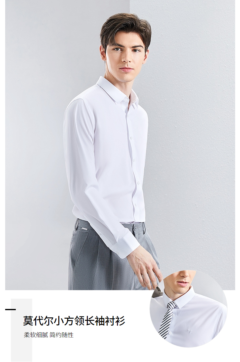 【特价】【含莫代尔】柒牌男士方领长袖衬衫2024春季新款商务正装打底衬衣 126A70400