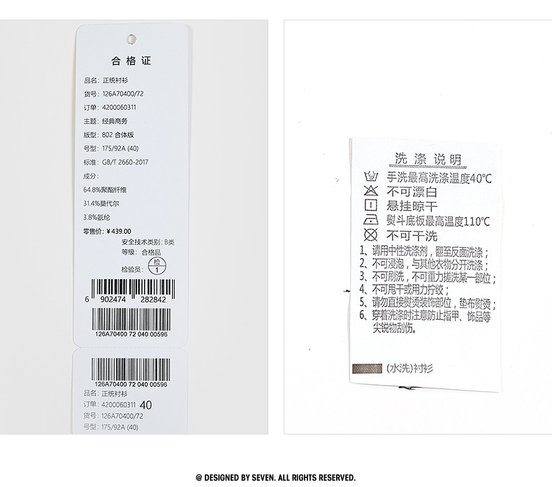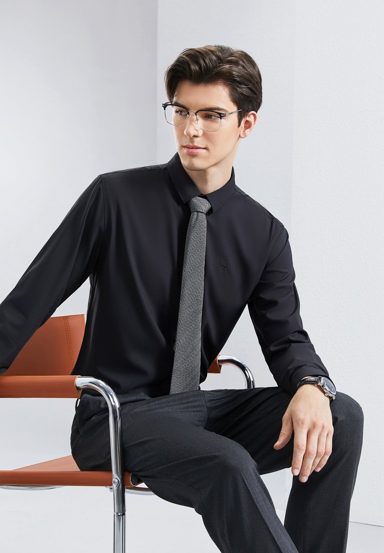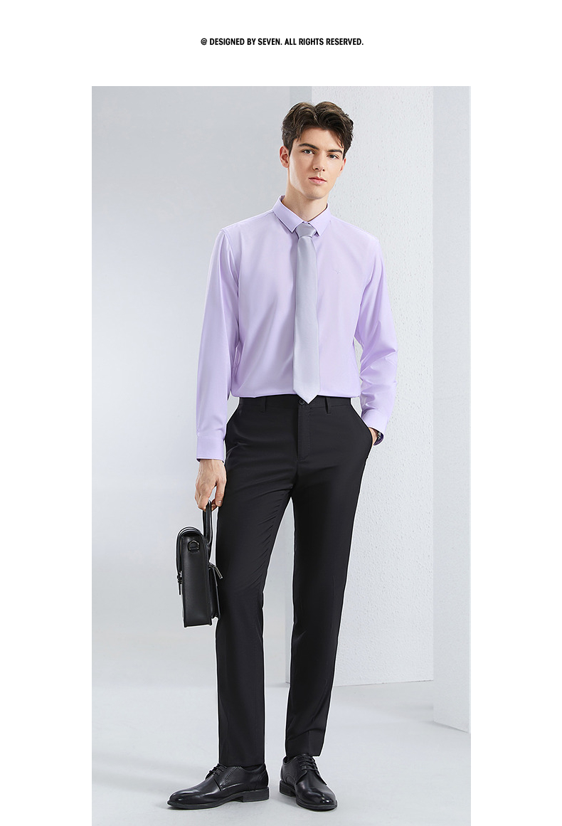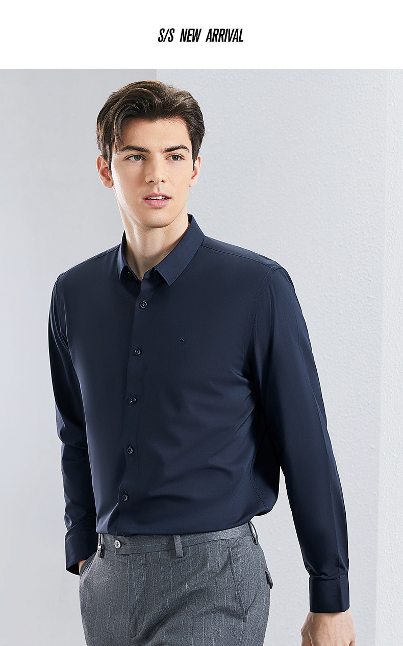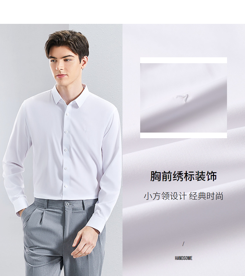 【特价】【含莫代尔】柒牌男士方领长袖衬衫2024春季新款商务正装打底衬衣 126A70400