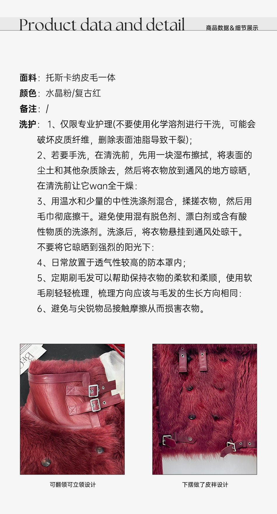 【孤品样衣,不退不换】【心动密语】轻奢百搭托斯卡纳皮毛一体保暖宽松外套冬季