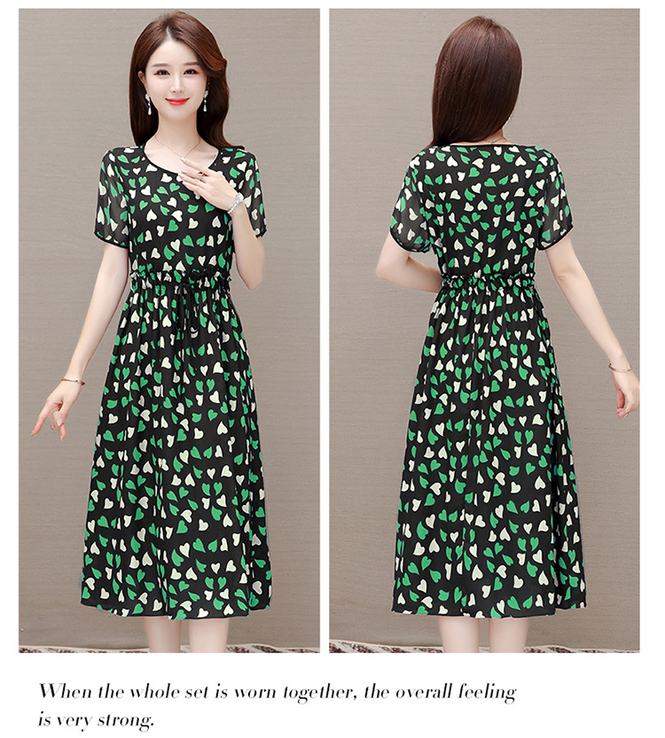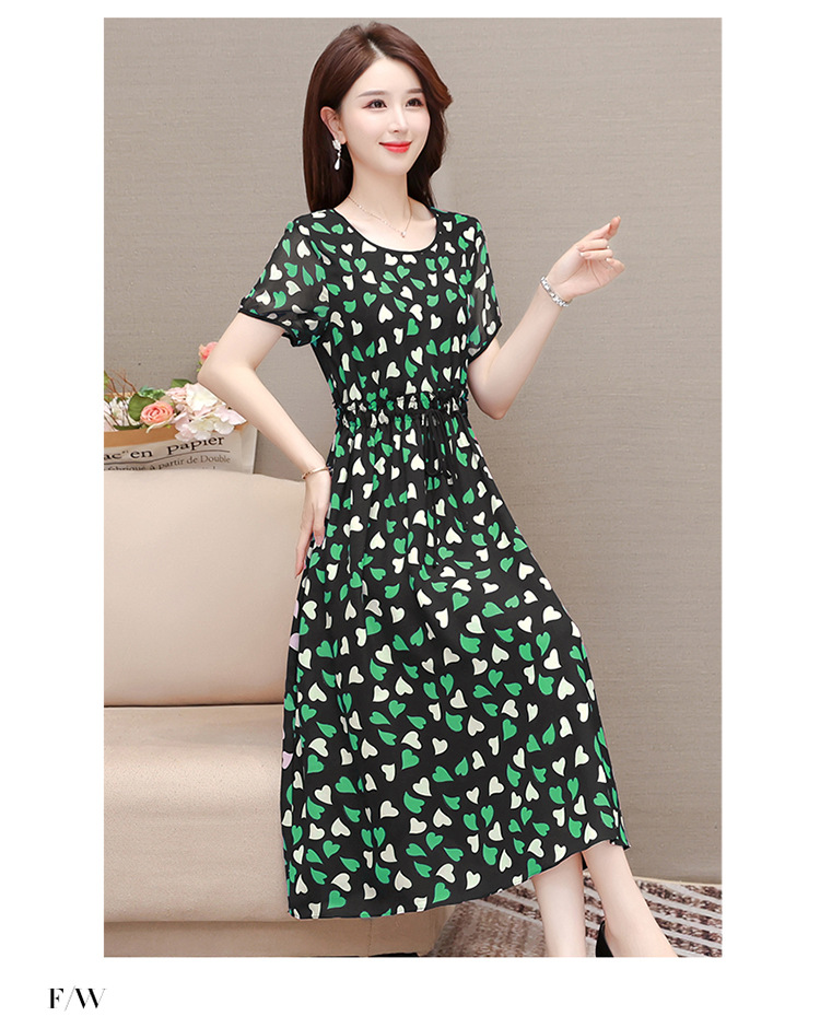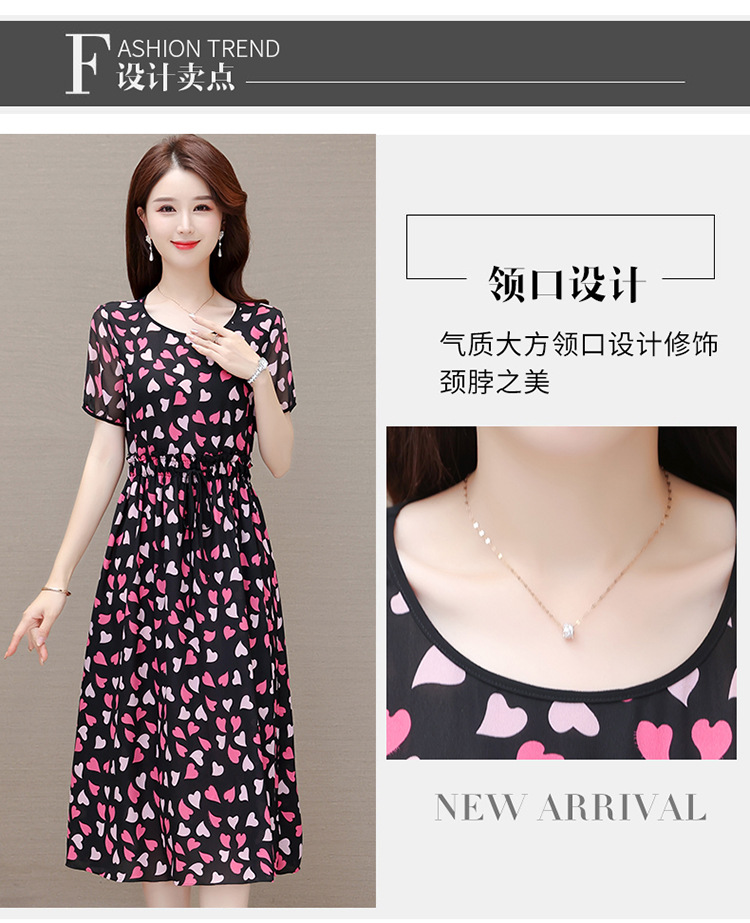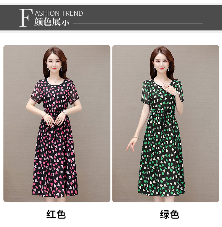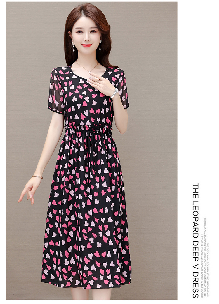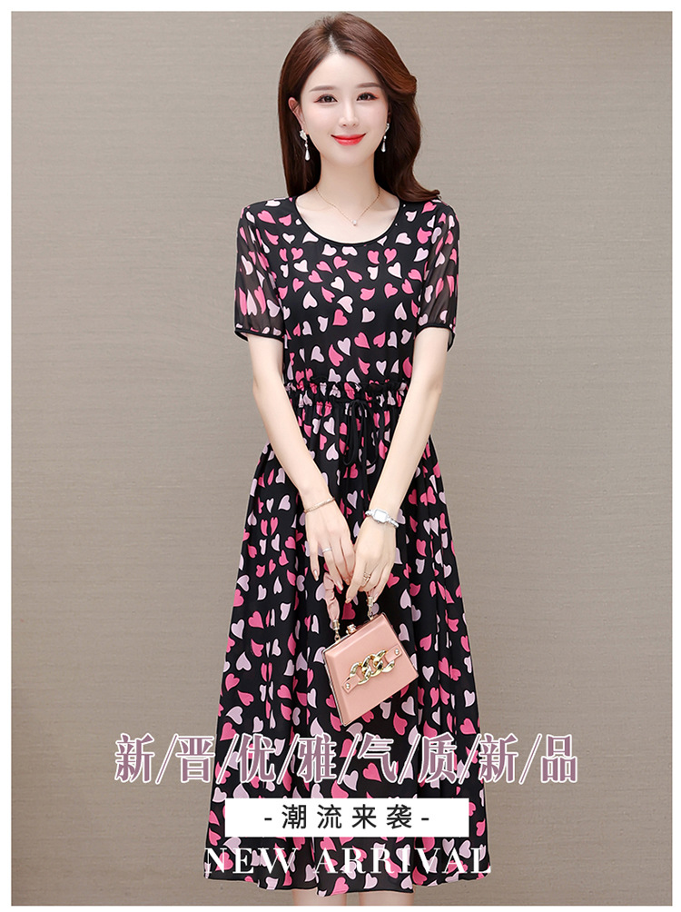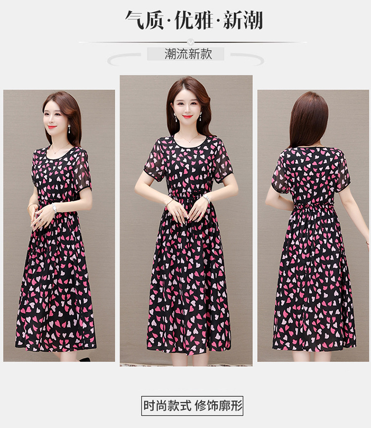 简约修身,夏款中长款印花时尚雪纺裙圆领短袖气质休闲连衣裙QYM-OMS-SLA318-L