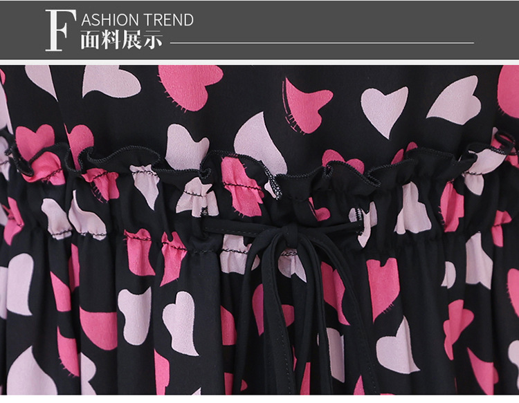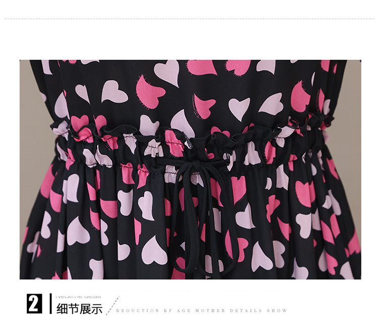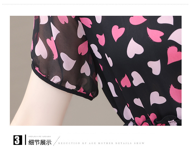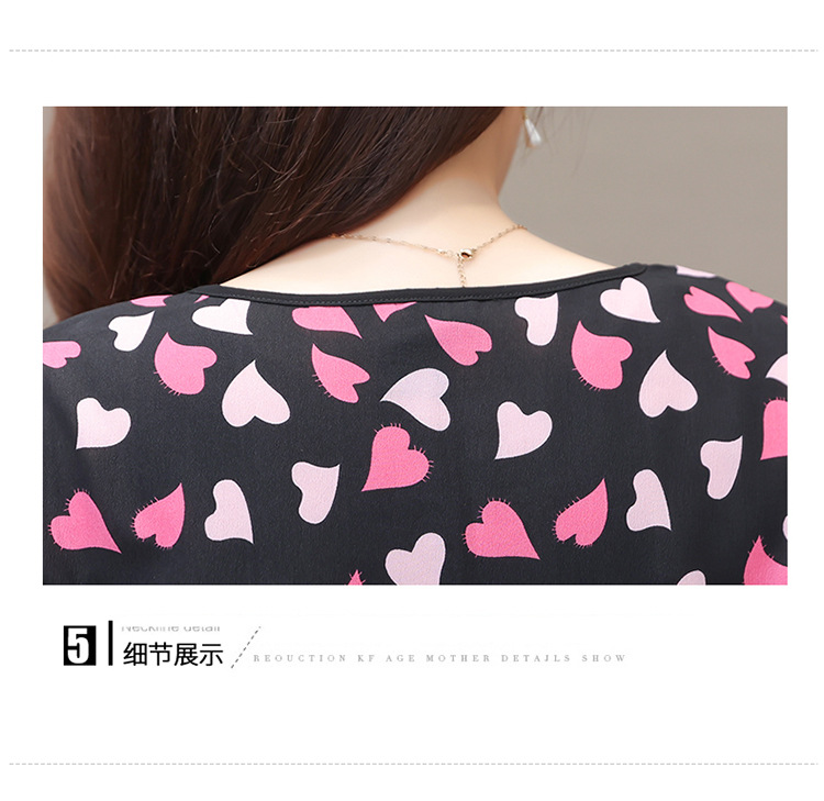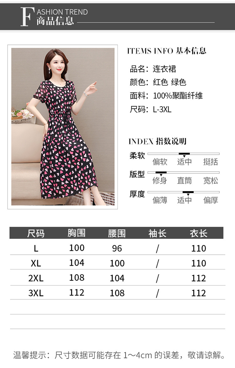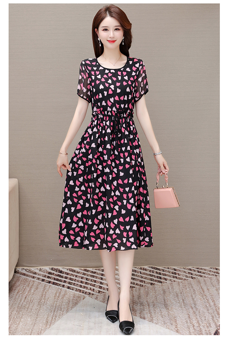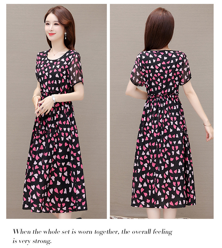 简约修身,夏款中长款印花时尚雪纺裙圆领短袖气质休闲连衣裙QYM-OMS-SLA318-L