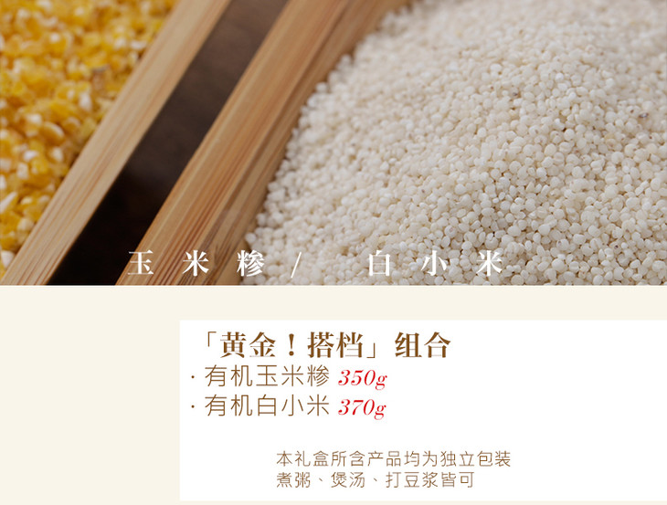 有机玉米糁720g/盒 有机白小米杂粮两件套组合装(中国有机认证)