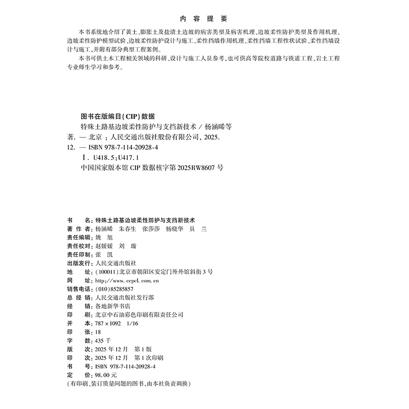 书名:特殊土路基边坡柔性防护与支挡新技术