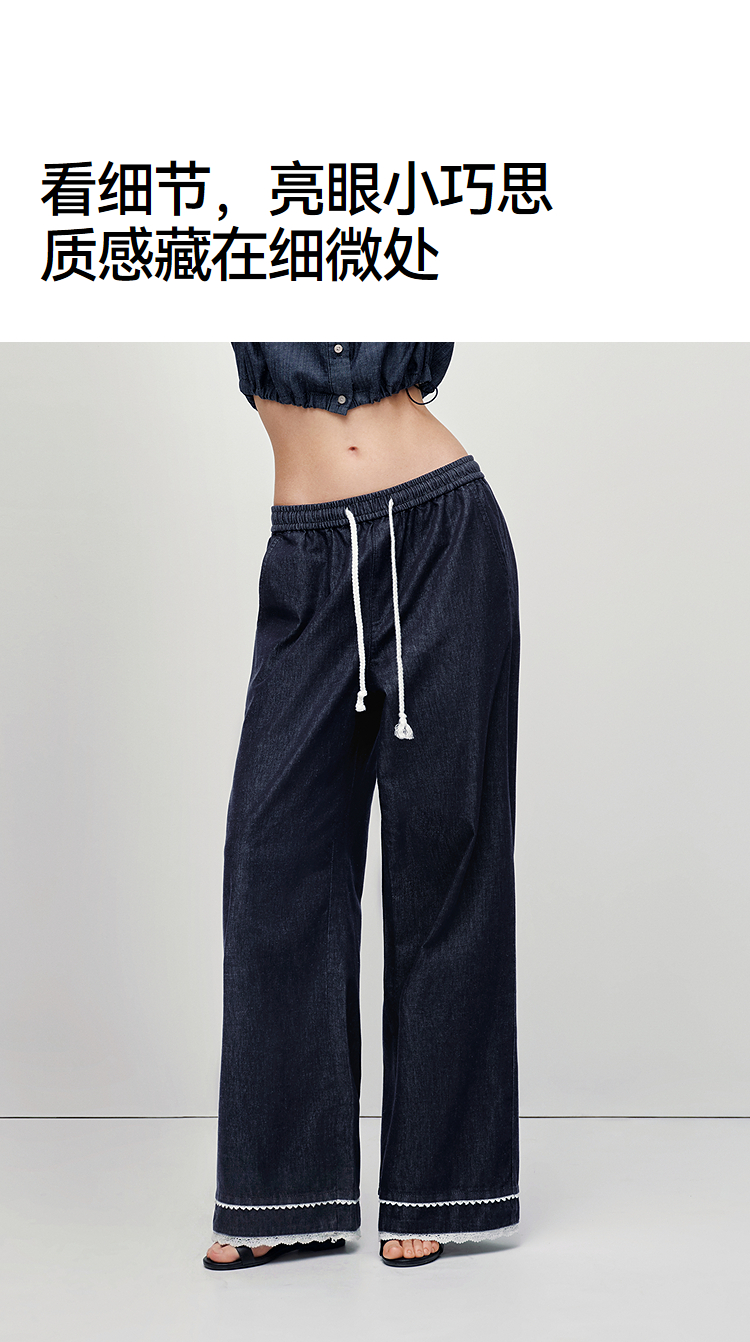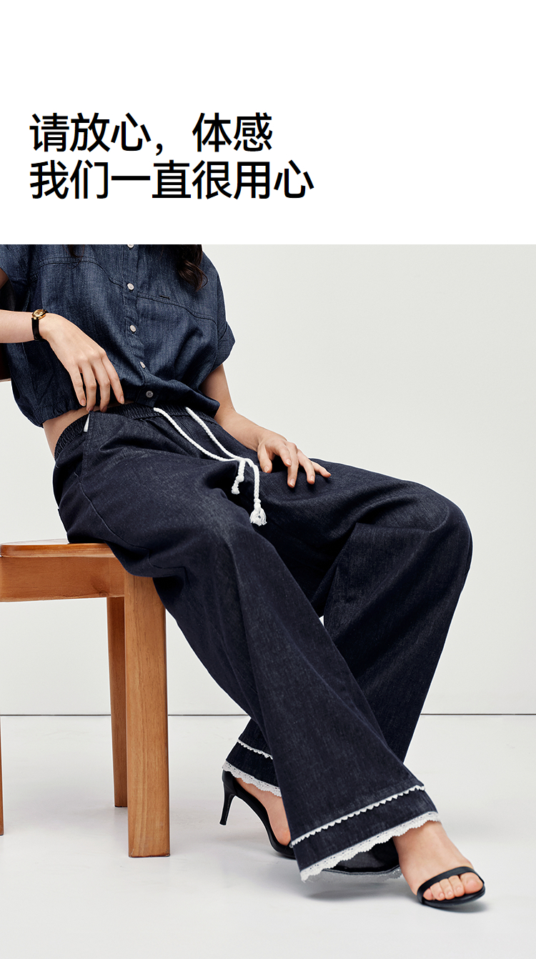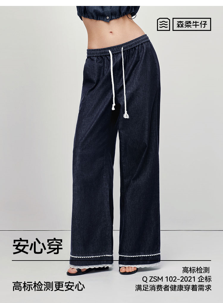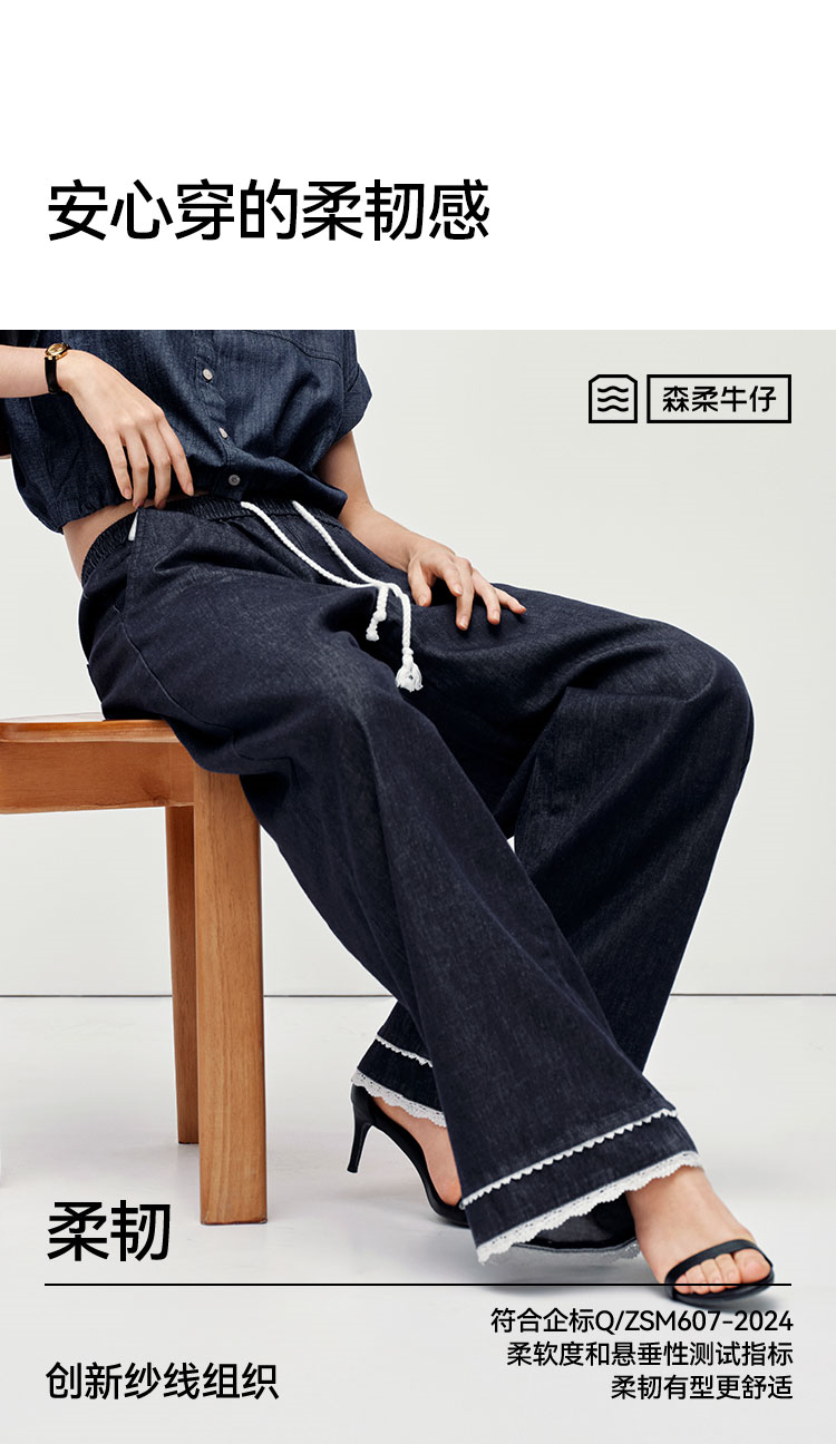商场同款|森马牛仔裤女夏季花边凉感阔腿裤2026新款气质时尚长裤