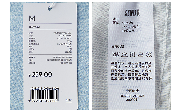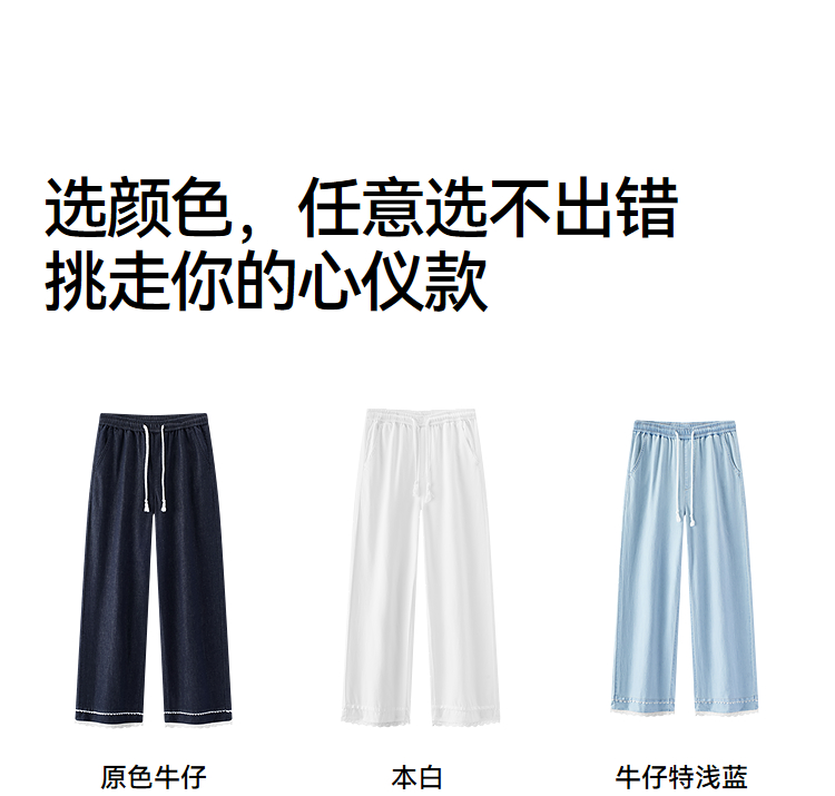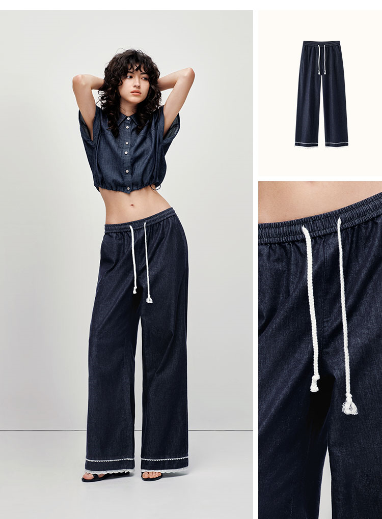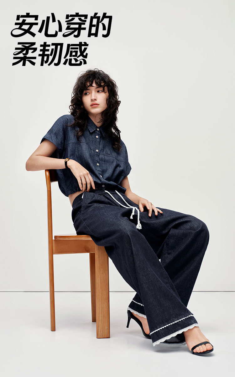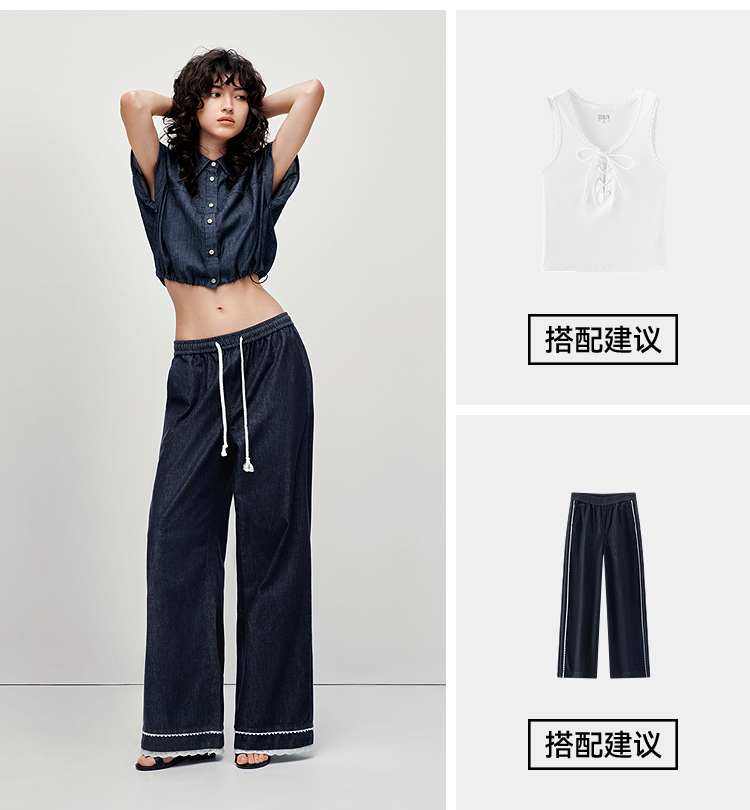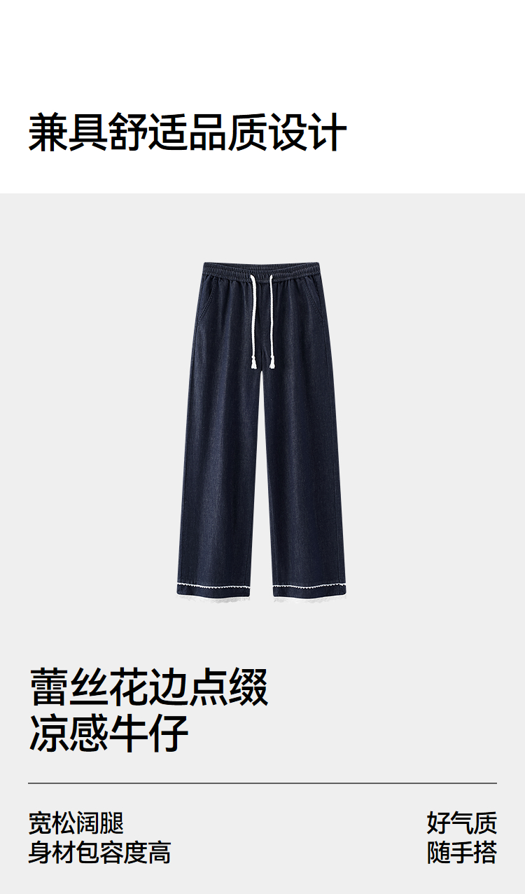 商场同款|森马牛仔裤女夏季花边凉感阔腿裤2026新款气质时尚长裤