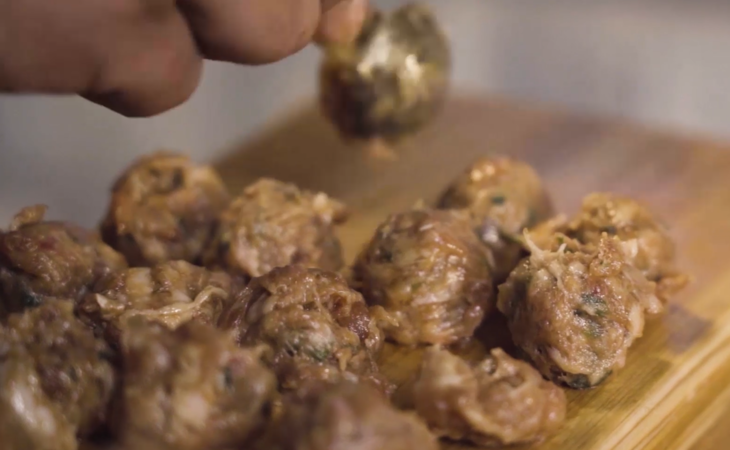 作为1927年创立,在福州传承了90多年的老字号小店,秋官郎还创下过2018/2019年两届吉尼斯世界纪录——世界上最大的鱼丸。 不要觉得最大鱼丸很简单,实际上因为鱼丸体积巨大,制作工艺也非常复杂和精细,皮和馅需要分离制作,鱼丸浆体温度需要控制,包裹鱼丸馅过程的技术要求更高,难度之大到除了需要四个资深鱼丸制作师傅纯手工制作外,同时还需要六个鱼丸制作师辅助才能完成。