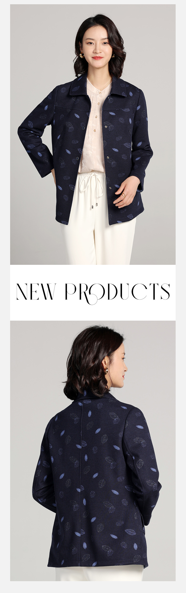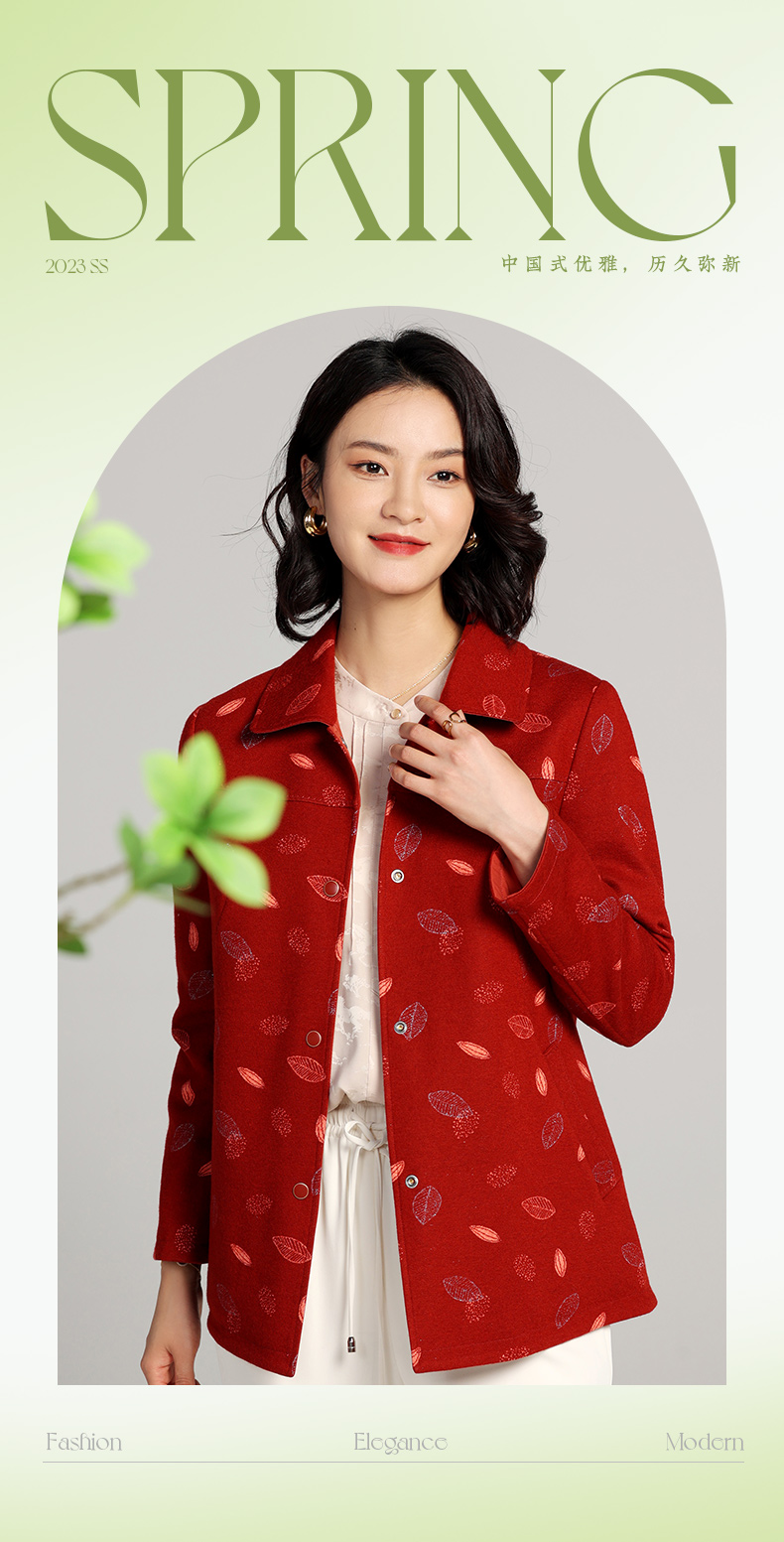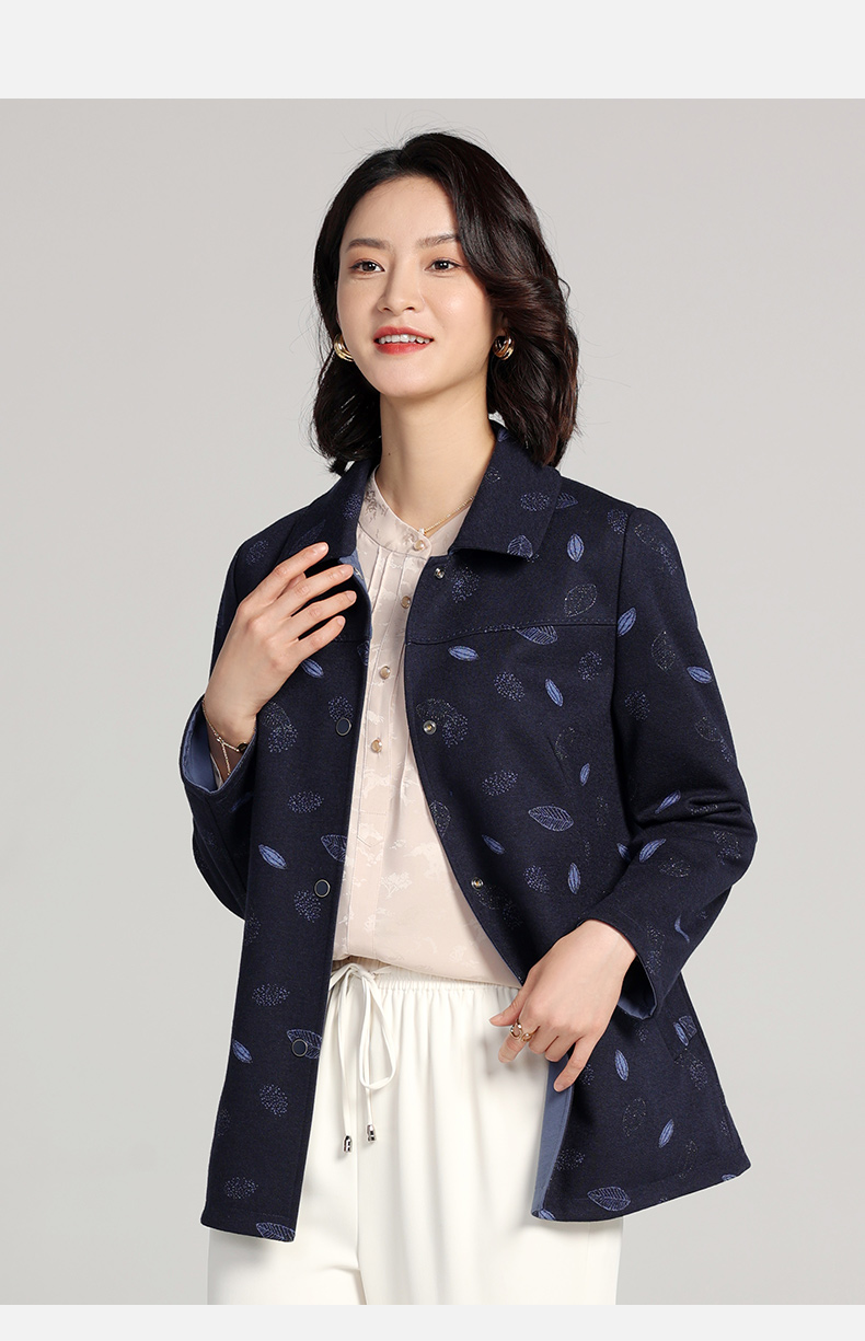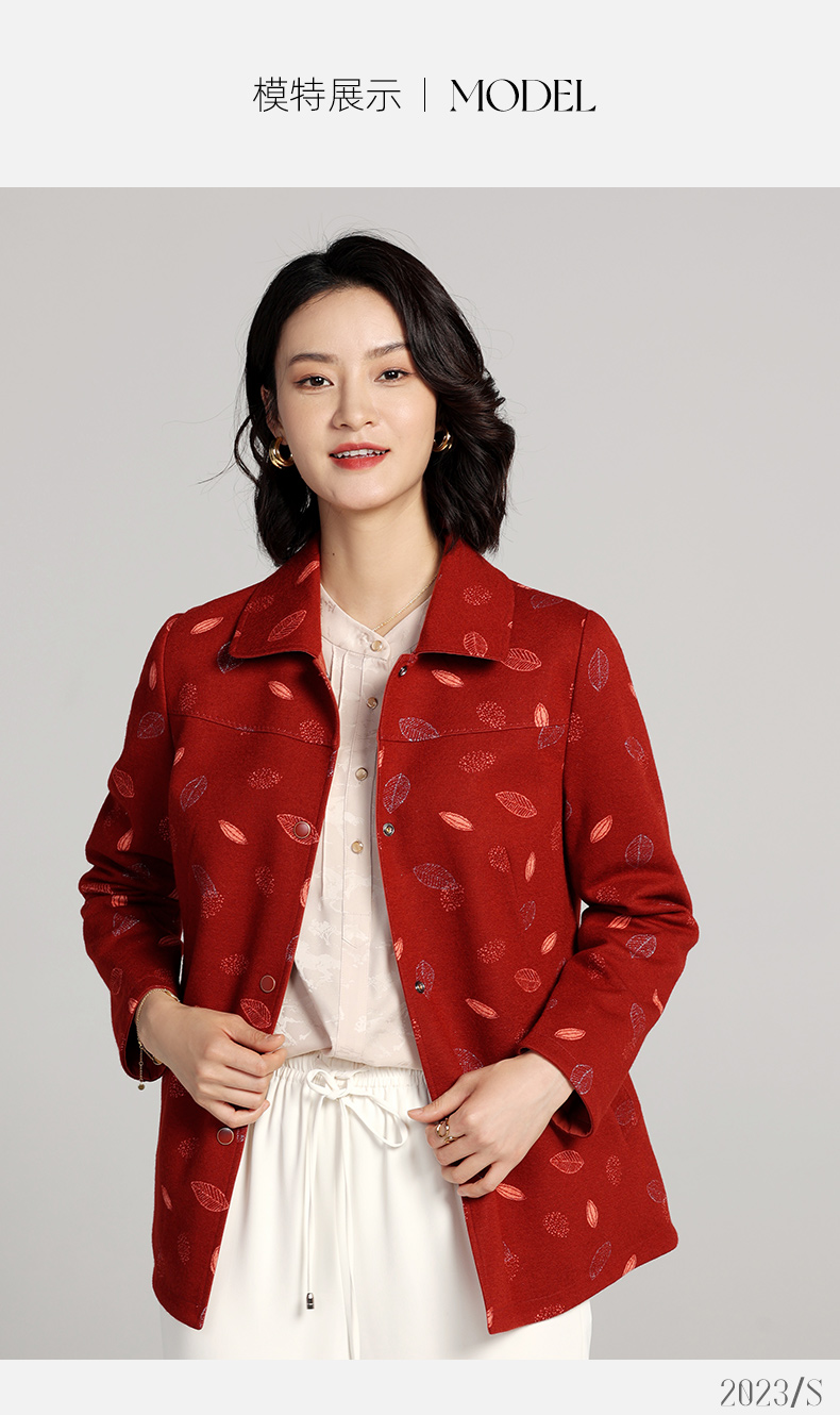 佐尔美2023春季新款 双面穿简约绵羊毛碎花上衣女外套E23SY01