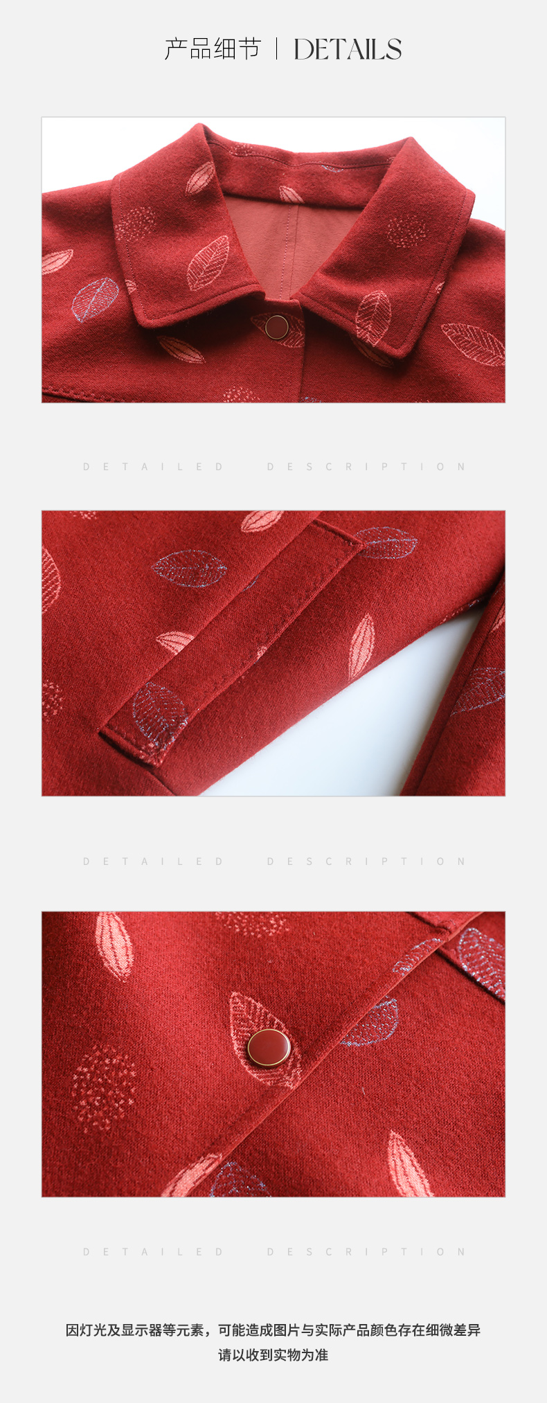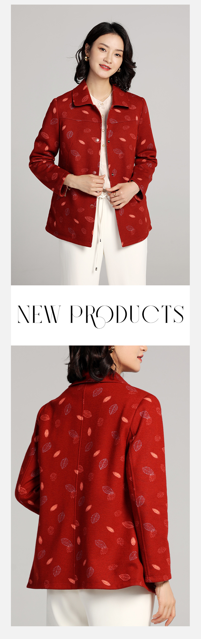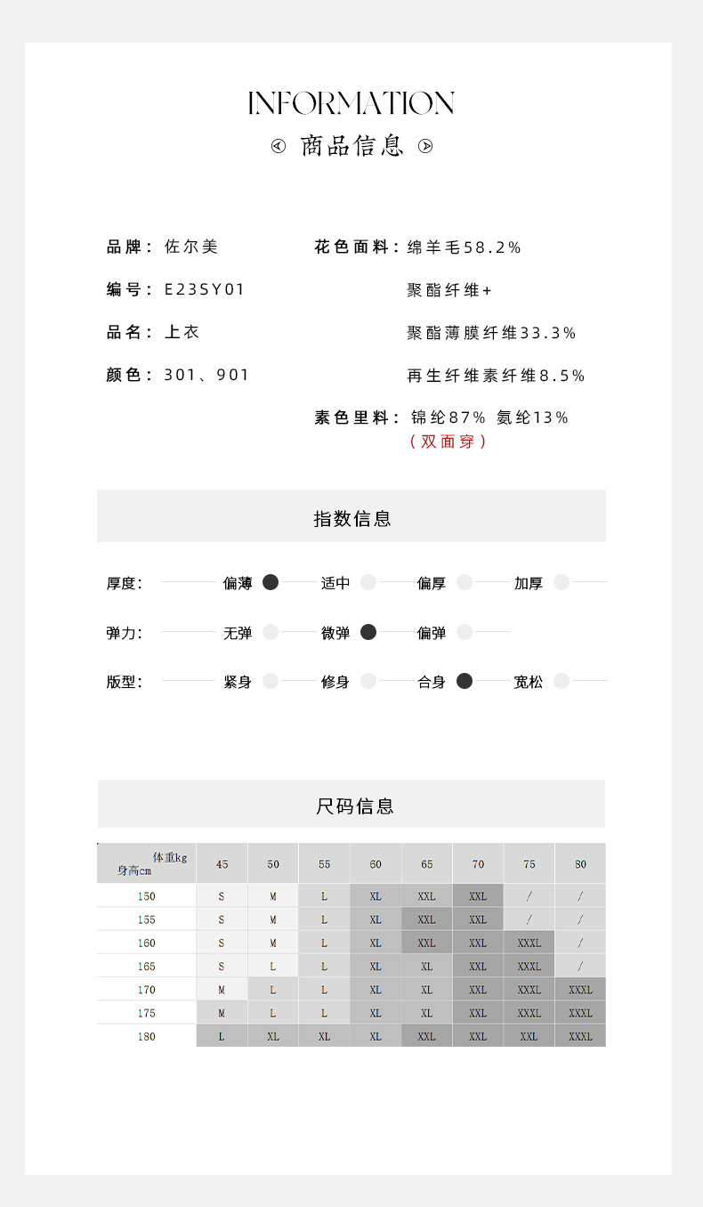 佐尔美2023春季新款 双面穿简约绵羊毛碎花上衣女外套E23SY01