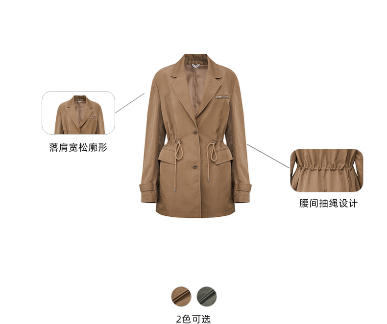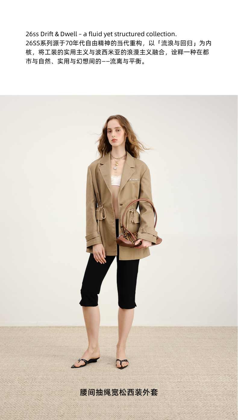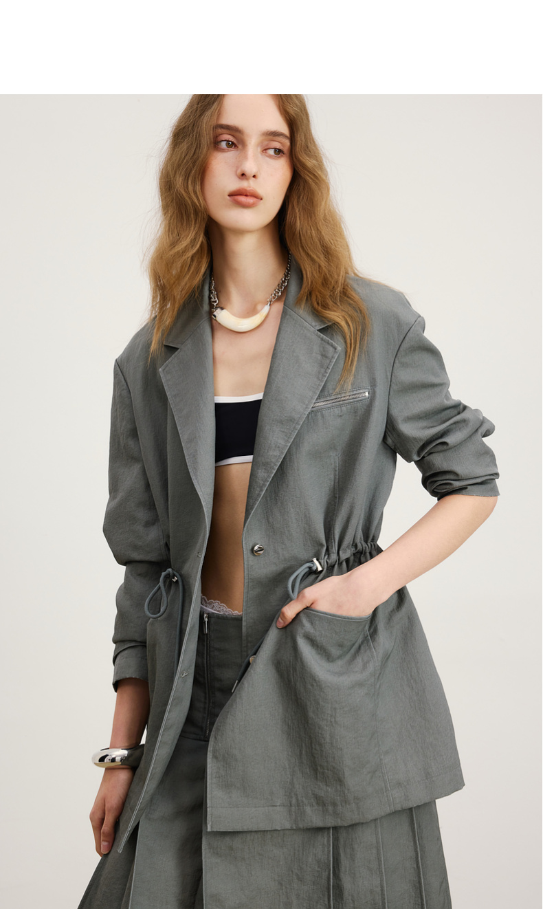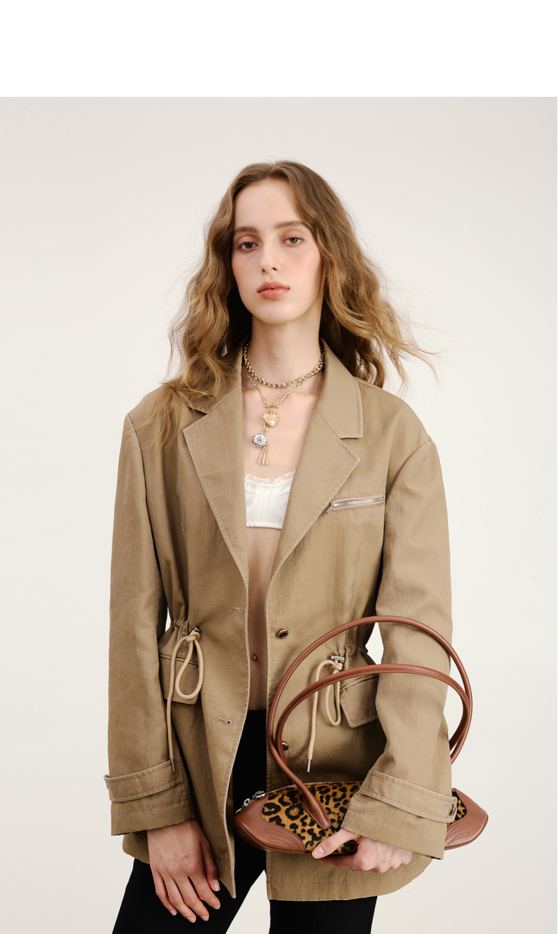 lost in echo2026年春季新款时髦复古感腰间抽绳宽松显瘦西装外套