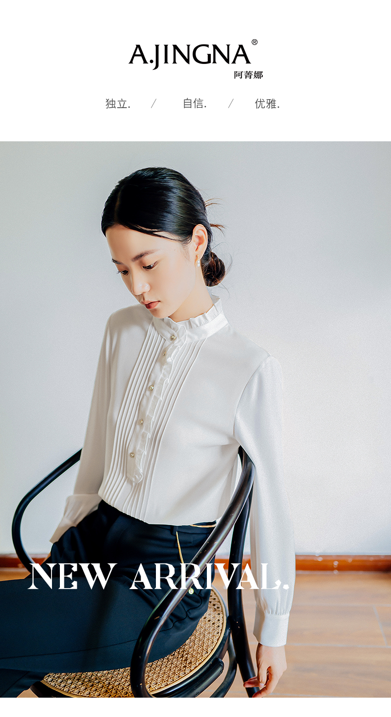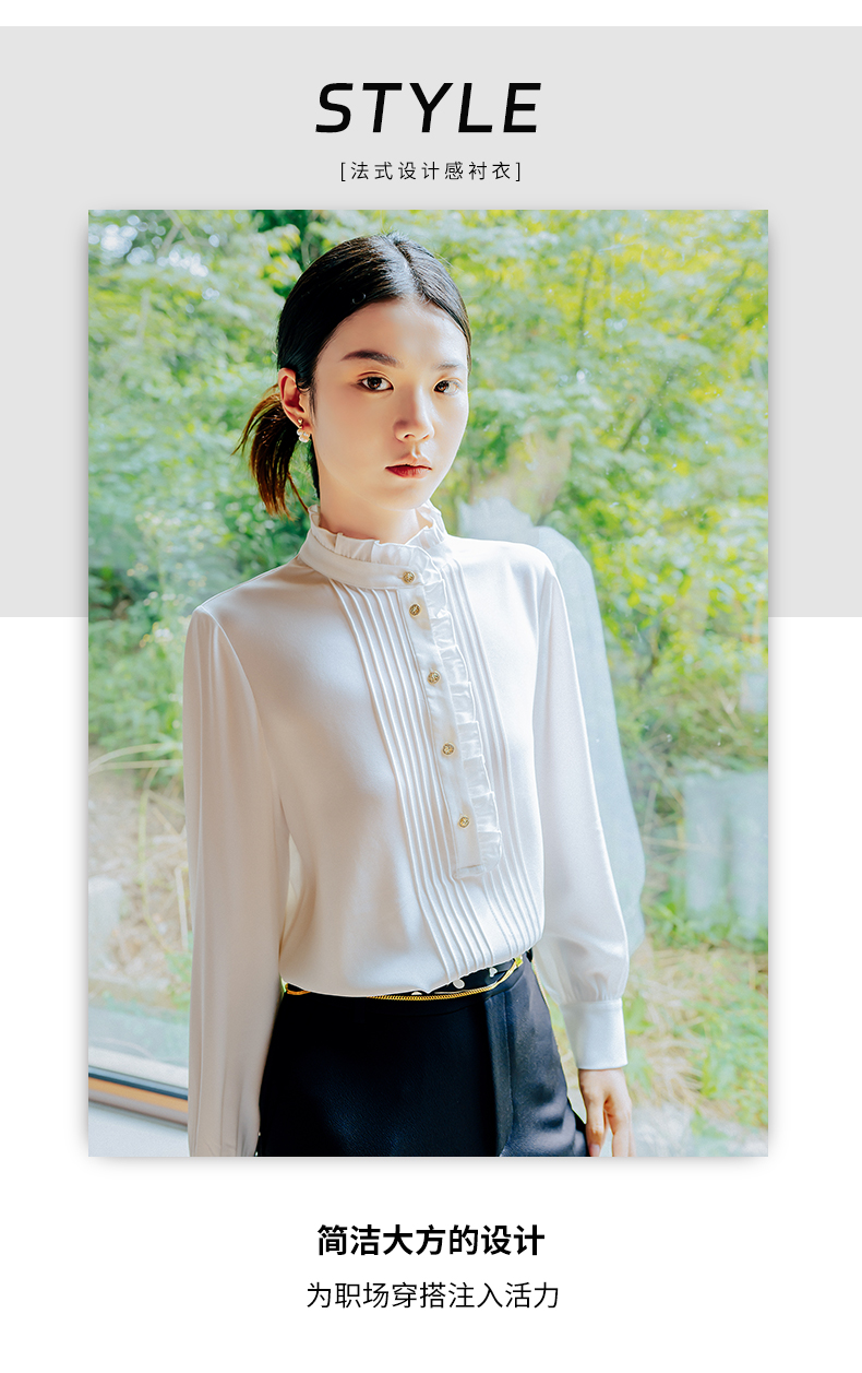 【商场同款】阿菁娜法式设计感简洁大气木耳边衬衫A29Q109005