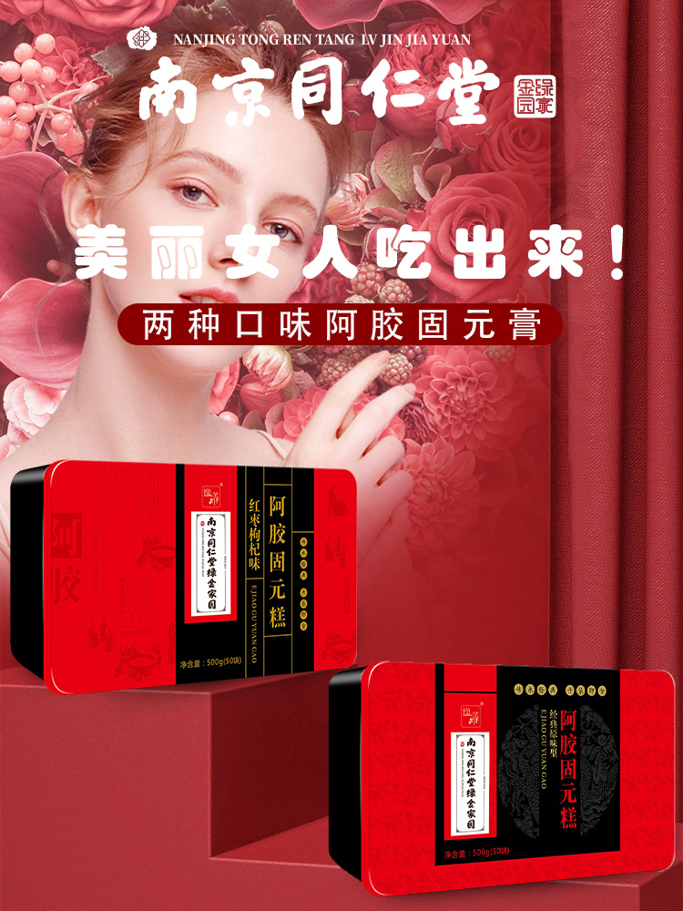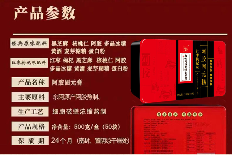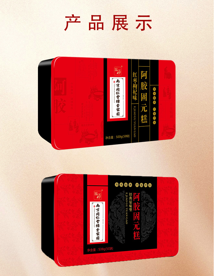 南京同仁堂阿胶糕500g*2盒+礼袋 即食纯手工滋补调理气血红枣枸杞阿胶固元膏