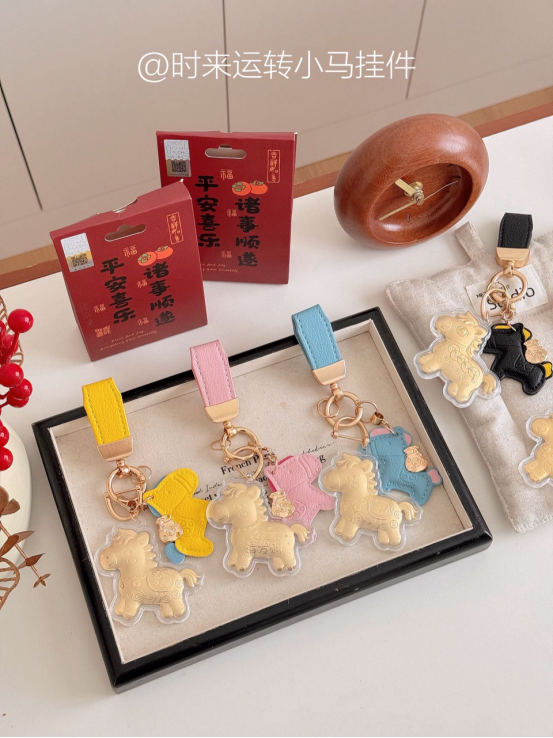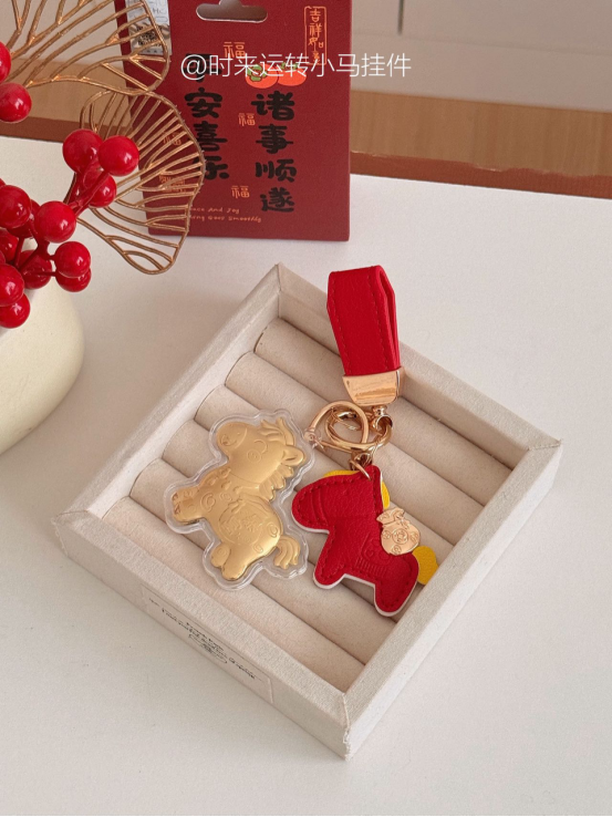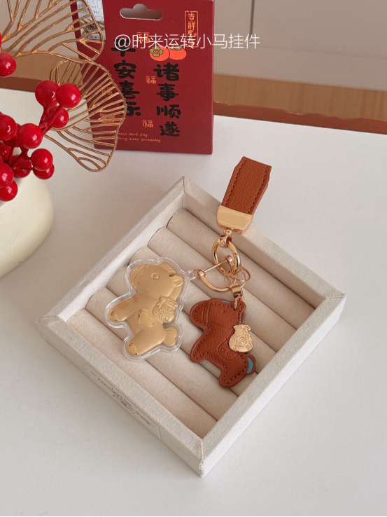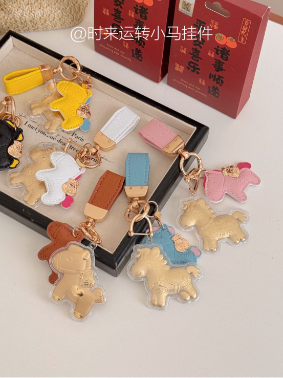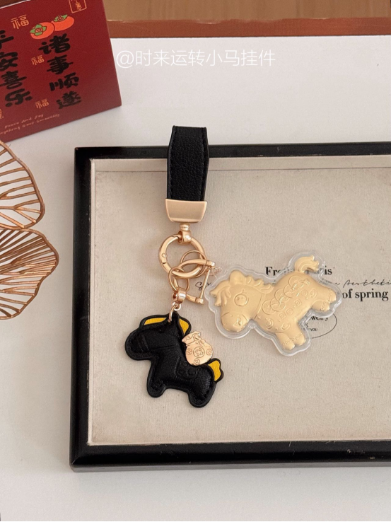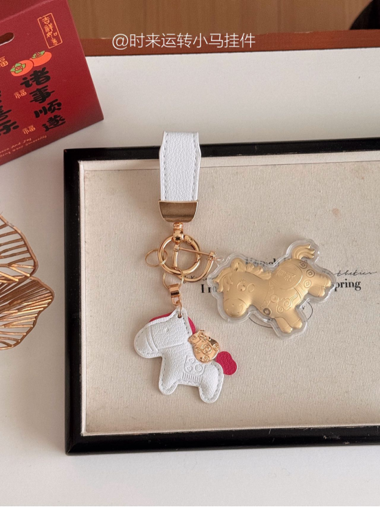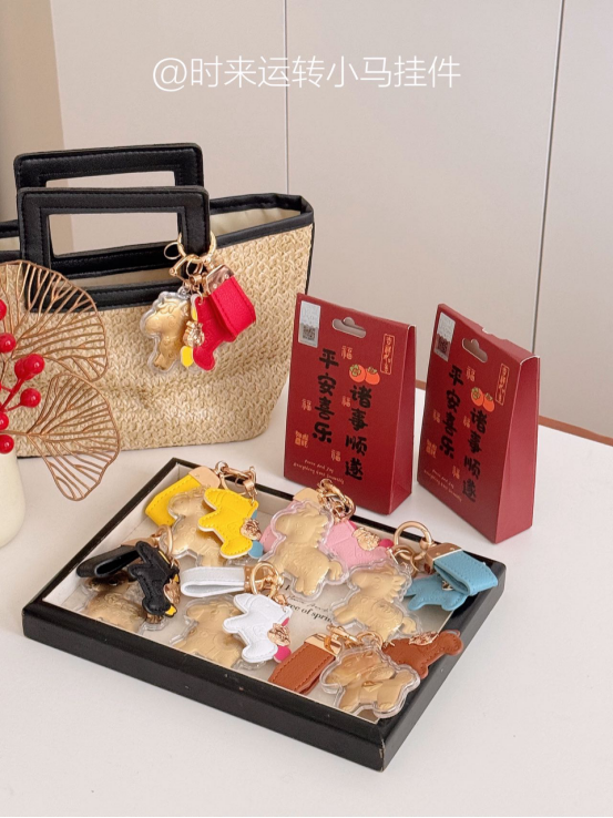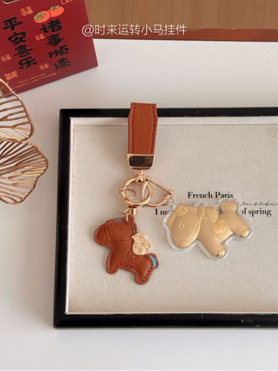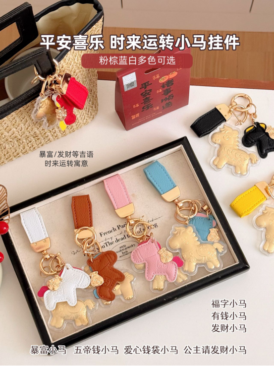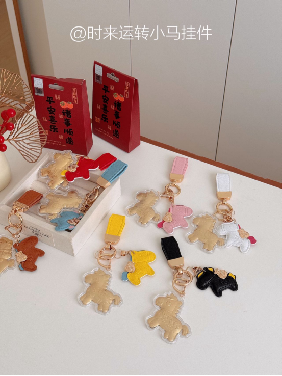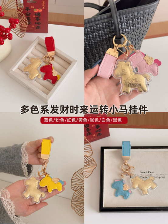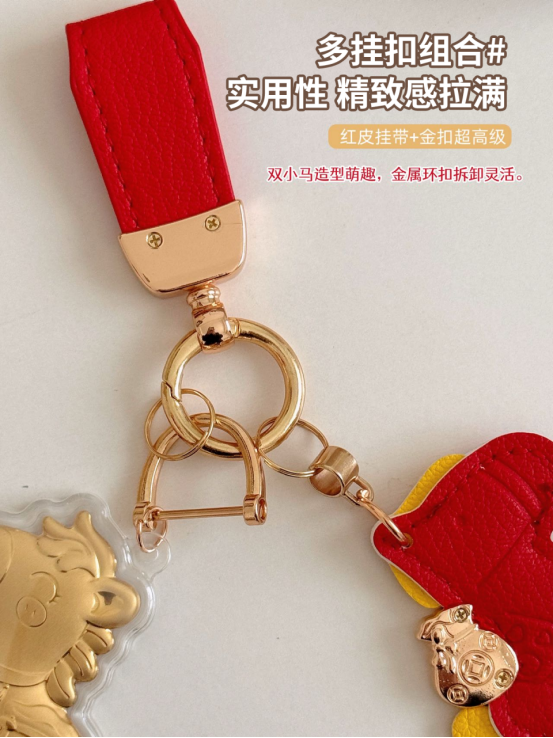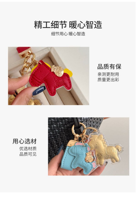 追求品味与个性 小马挂件超百搭 品质好物简约设计 随身佩戴不违和 收纳钥匙玩趣出行 轻松适配日常场景 多色皮质外壳 红金撞色超亮眼 金色小马带吉语 时来运转讨彩头 礼盒包装精致 自用送礼都合适