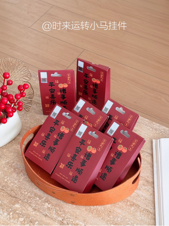 扫码验防伪 小马挂件正品保障 查询结果标注品牌正品 首次查询超安心 红色礼盒印平安喜乐 礼盒装自带吉意 金箔小马裹透明壳 吉语讨彩头 多色挂带可选 皮质柔软耐用 正品品质加持 入手更放心