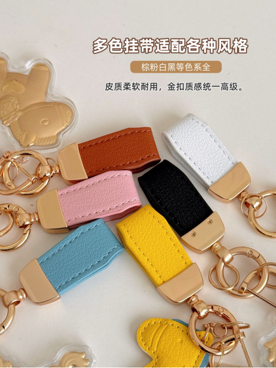 多色挂带适配各种风格 棕粉白黑等色系齐全 皮质柔软耐用 金属挂扣质感高级 彩色皮绳和金色小马叠戴更潮 挂握手感舒适不硌手