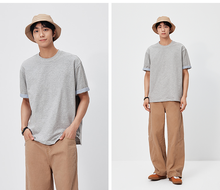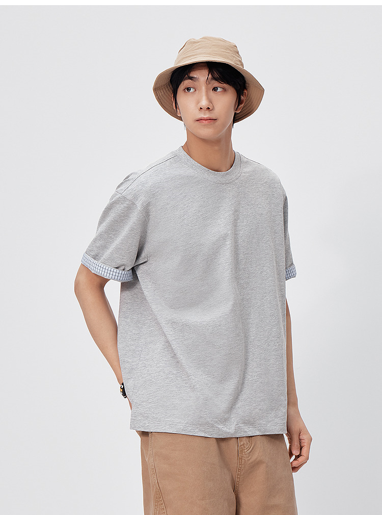 森马短袖T恤男夏袖内格子拼接假两件针织衫2026新款纯棉圆领上衣