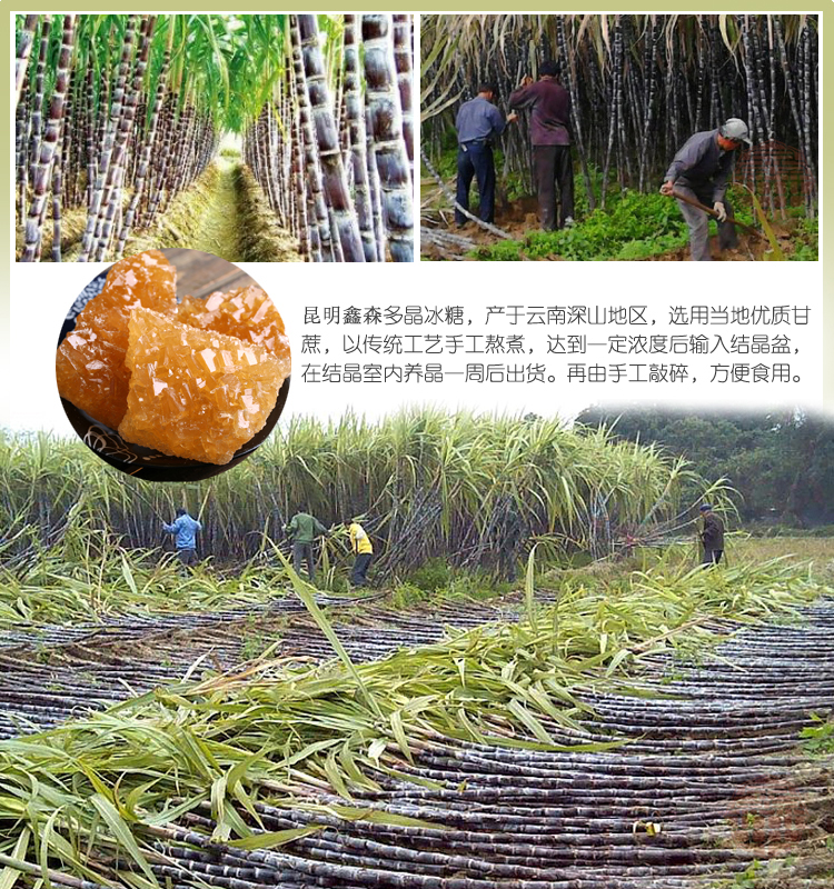 咱们选择的甘蔗,在自然野生环境下生长,依山傍水,熬制出来的冰糖比普通市面上的更好