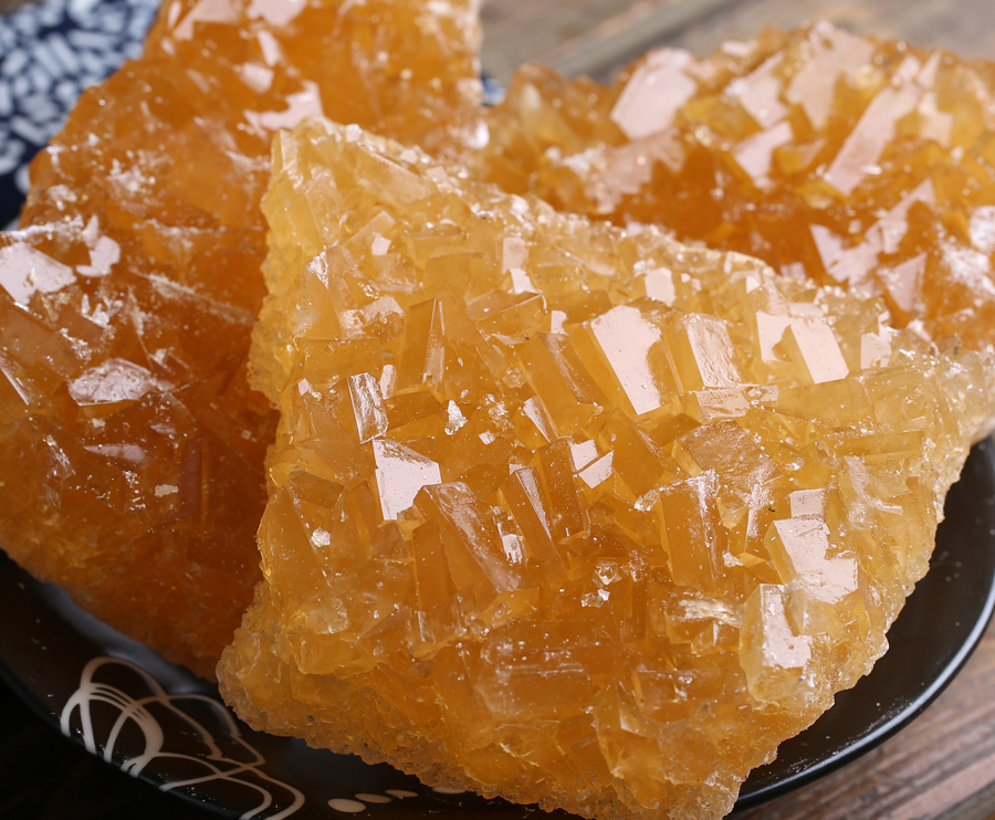 多晶的冰糖要好于单晶的冰糖,单晶体冰糖工艺较为简单,结晶较粗。然而多晶老冰糖纯手工古法制作而成,最大限度的保留营养,热量低,甜而不腻。