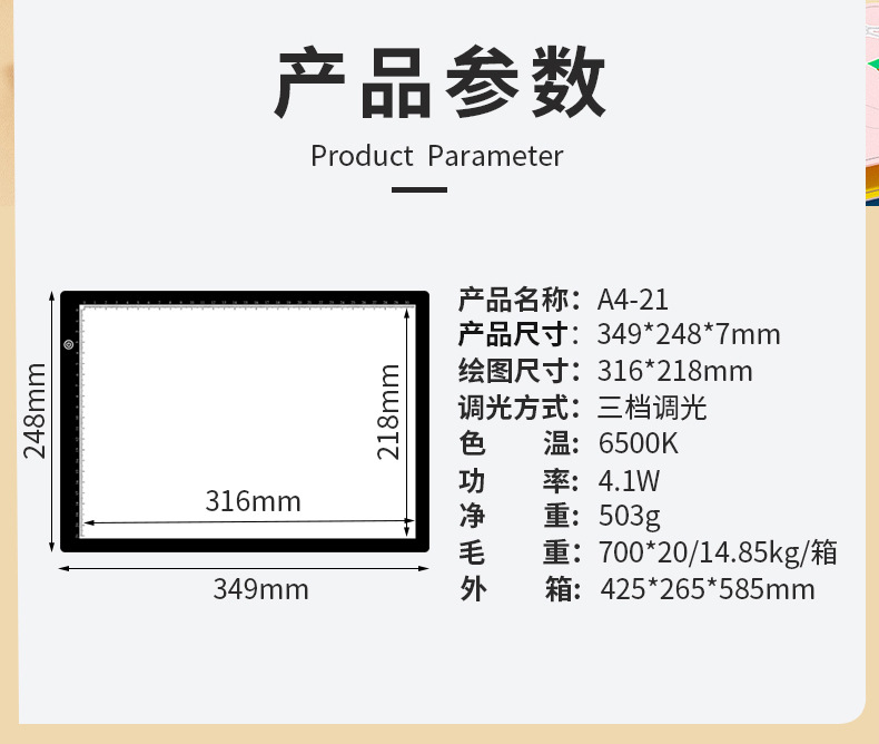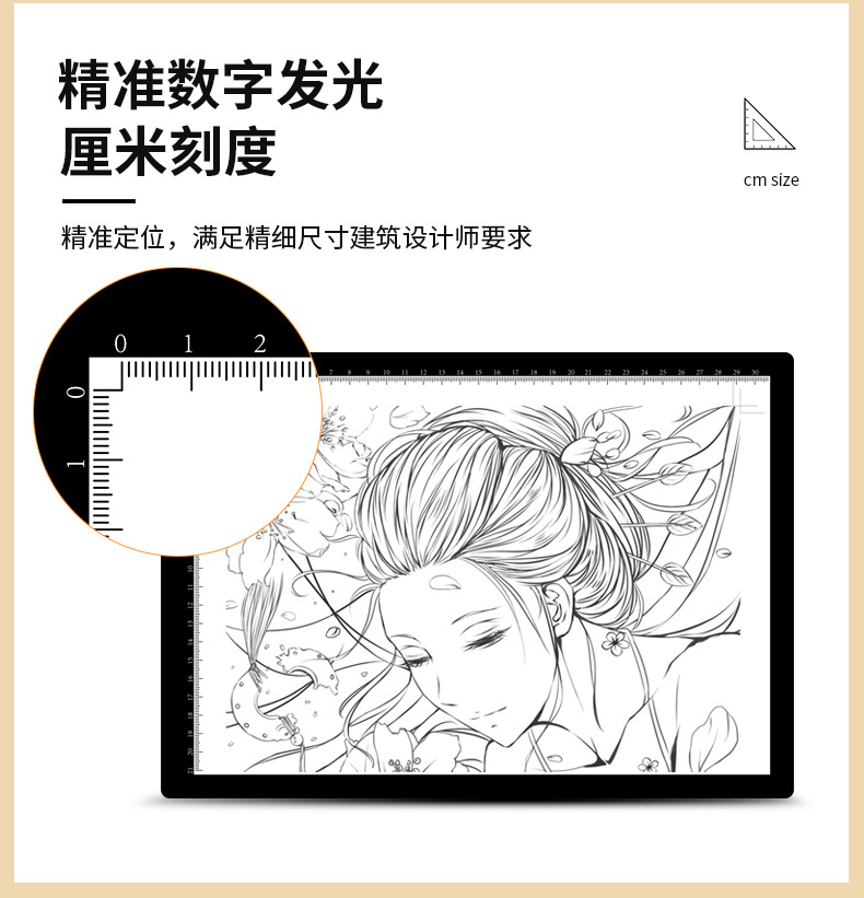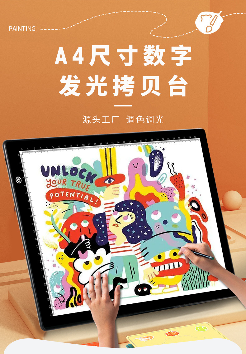 A3尺寸可画A3/8K/A4,全白匀光,柔光护眼!