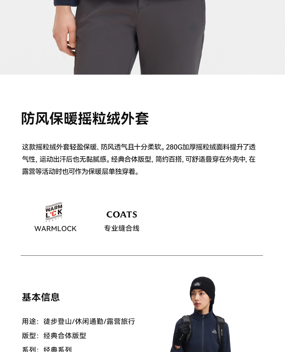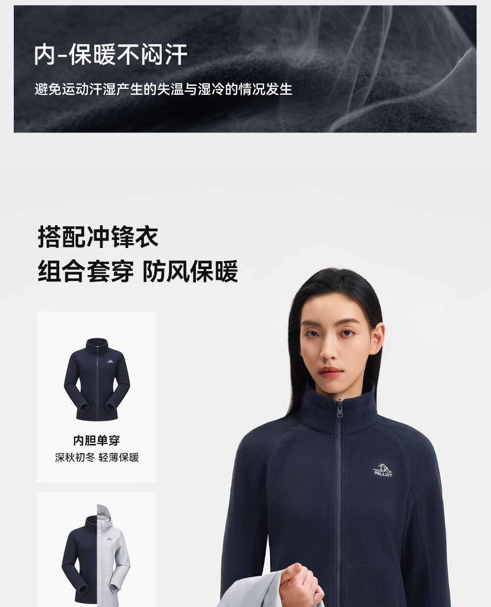 伯希和户外抓绒衣女立领防风徒步登山服吸汗保暖冲锋内胆运动外套