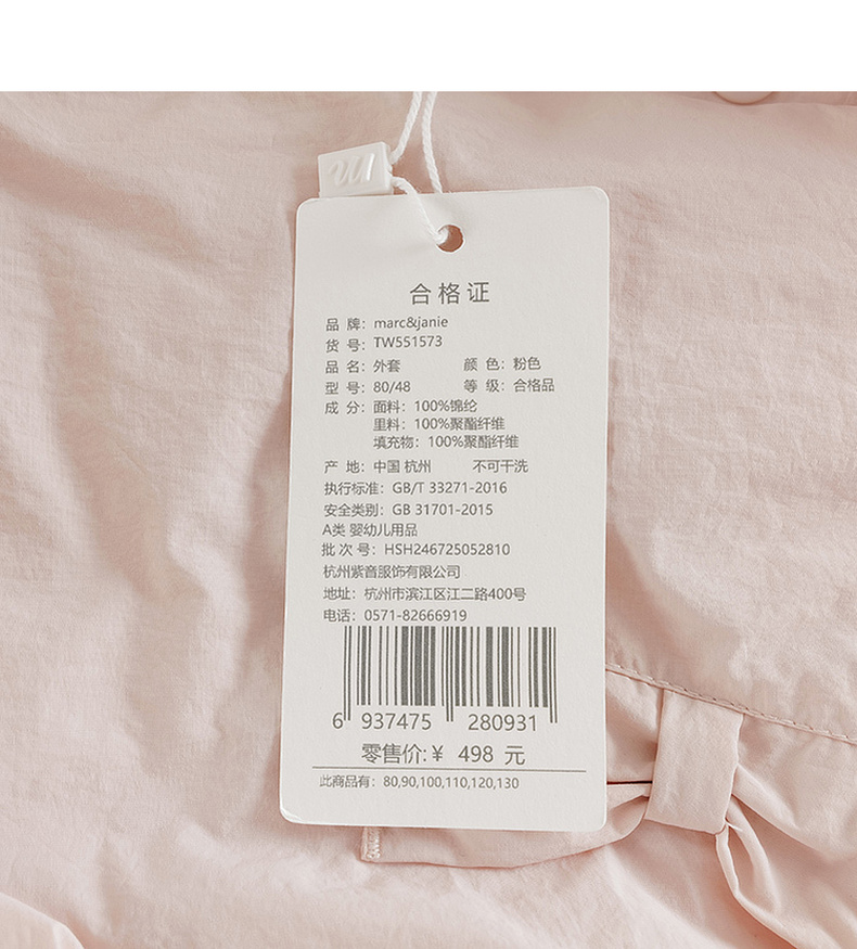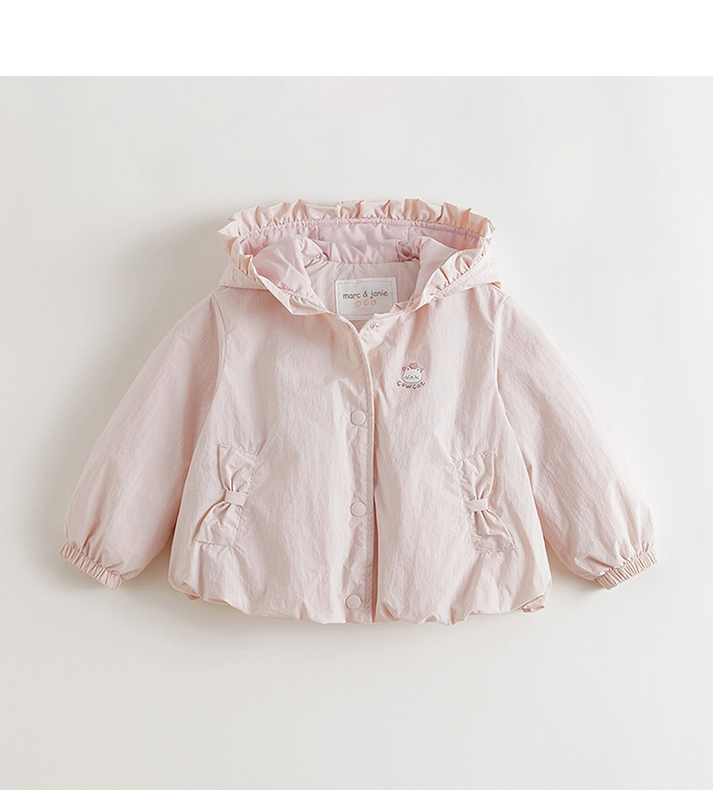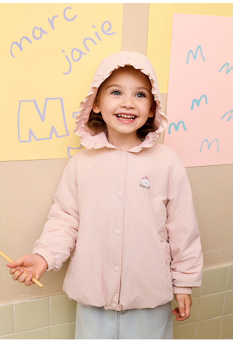 马克珍妮女童可爱猫咪花边帽夹棉外套2025年秋冬新款551573